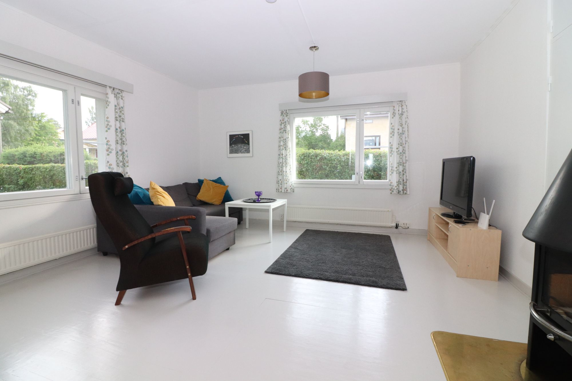 Vuokrataan kodikas, hyväkuntoinen omakotitalo Niiralassa viehättävällä omakotitaloalueella. Keskikerroksessa on keittiö, wc, olohuone ja makuuhuone. Keittiössä on keraaminen liesi, liesituuletin,iso jääkaappi ja astianpesukone sekä kuvassa näkyvä iso pöytä. Alakerrassa on saunaosasto (puukiuas), kodinhoitohuone, jossa on pesukone ja kuivausrumpu käytettävissä sekä varasto/askartelutila. Yläkerrassa on kaksi makuuhuonetta ja wc. Pihassa on omenapuita, viehättävä terassitaso, jossa kalusteet ja kaasugrilli ja puuliiteri.
