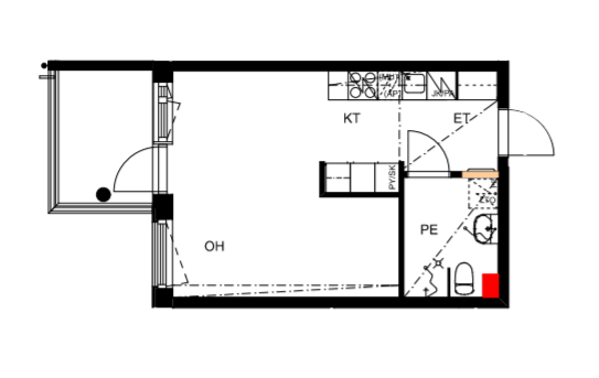 Kerrostalo, 30,5 m², 1h + ak + lasitettu parveke