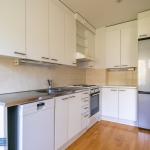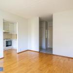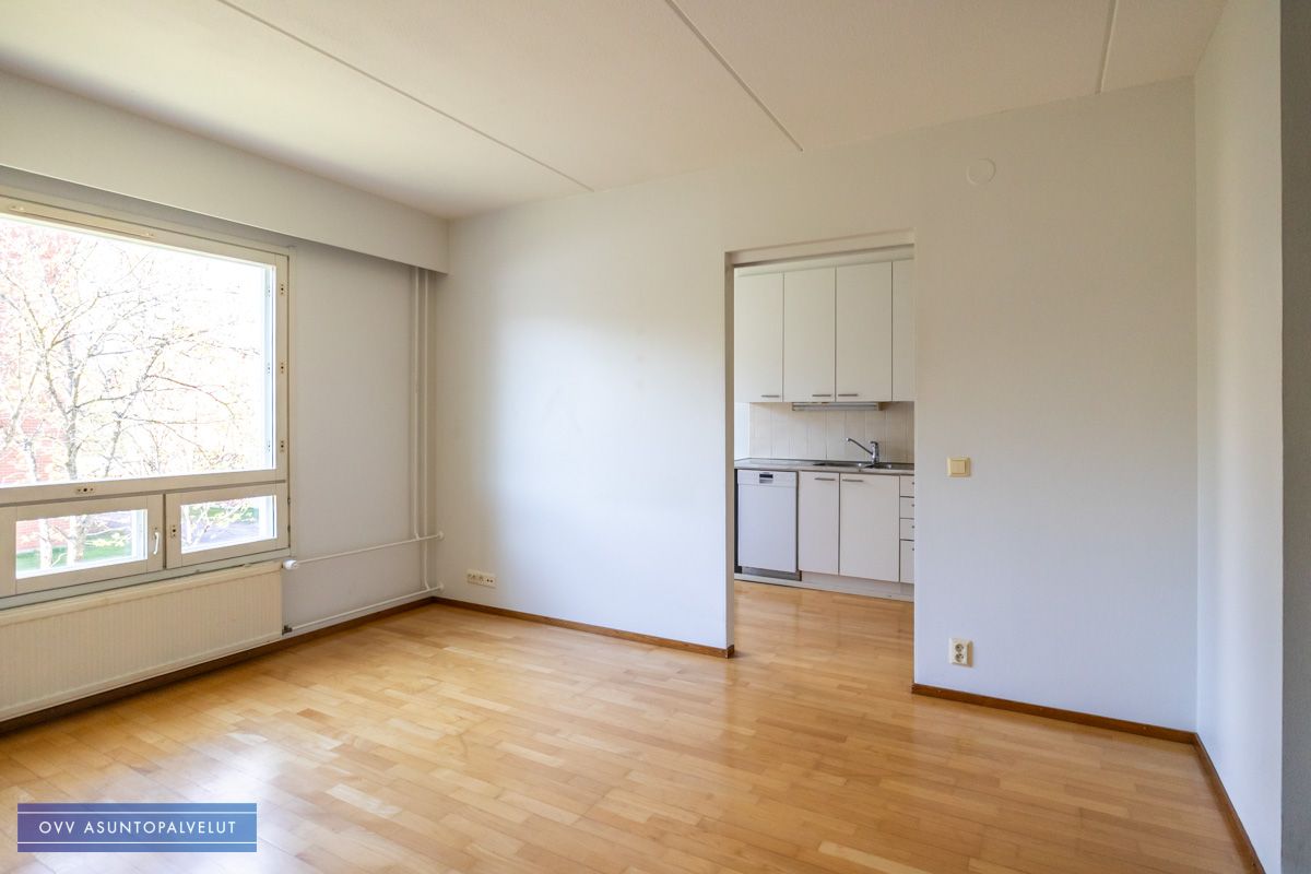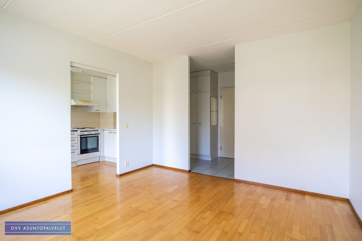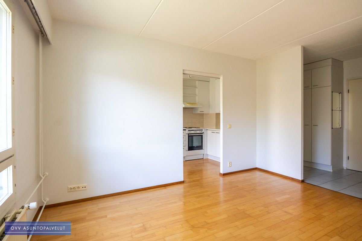 Avarasta eteisestä käynti olohuoneeseen, kylpyhuoneeseen sekä makuuhuoneeseen. Olohuoneen kautta käynti keittiöön, josta löytyy kaikki tarvittava aina astianpesukoneesta lähtien. Keittiöön sopii myös ruokapöytä