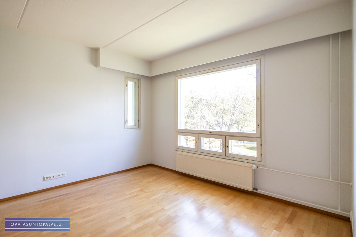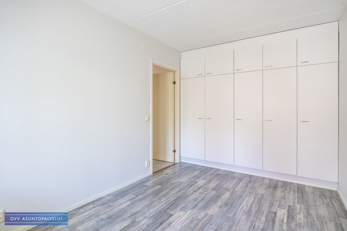 Makuuhuoneessa paljon kaappitilaa sekä käynti lasitetulle parvekkeelle, josta näkymä puistomaiselle piha-alueelle.