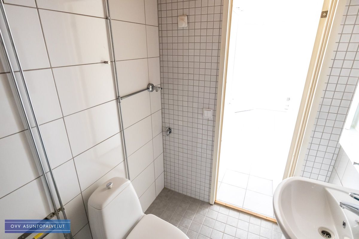 Kylpyhuoneessa paikka ja liitännät pyykinpesukoneelle. Taloyhtiössä myös pesutupa asukkaiden käytössä.