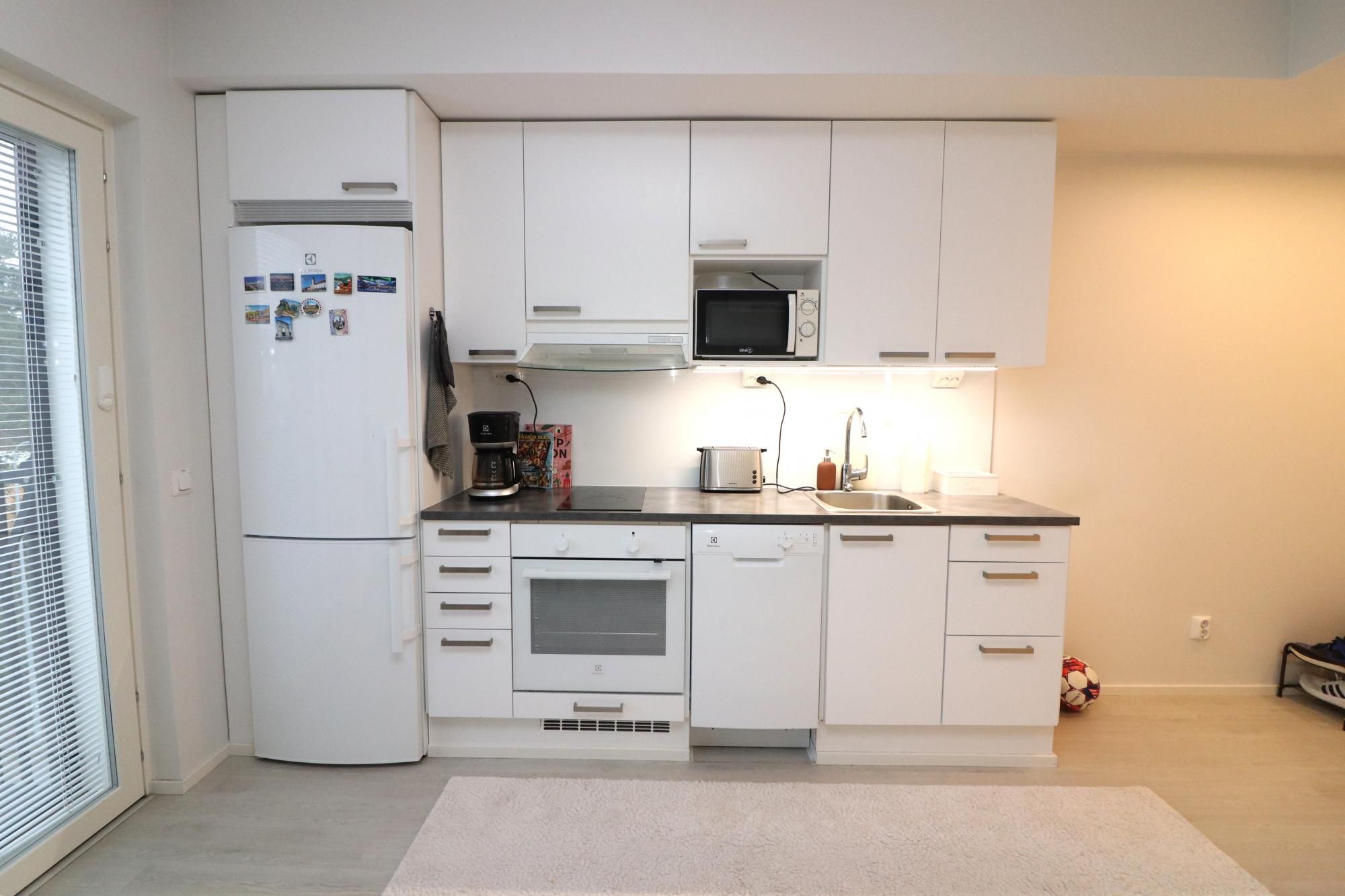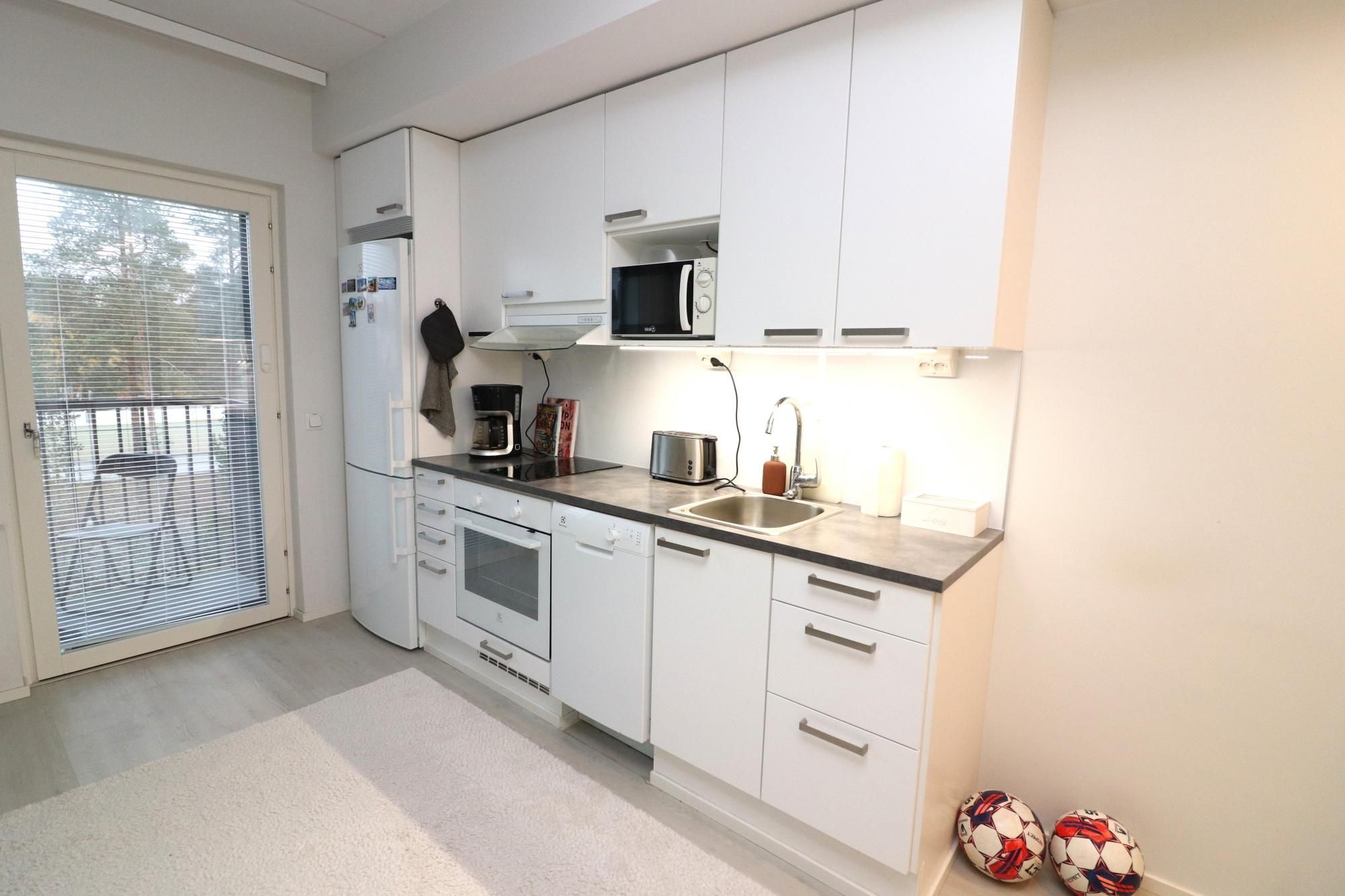 Kaunis valoisa yksiö Saaristokaupungin Lehtoniemessä. Asunnossa vaaleat pinnat sekä laadukkaat kodinkoneet. Keittiössä keraaminen liesitaso ja liesituuletin, kalusteuuni sekä jää-pakastinkaappi-yhdistelmän lisäksi 45 cm leveä astianpesukone. Eteisestä löytyy peilikaappi säilytystiloineen. Alueelta löytyvät monipuoliset ulkoilu-ja liikuntamahdollisuudet. Lähimpään kauppaan (S-Market) matkaa vain 200 m, kaksi uimarantaa kilometrin säteellä, koulu ja päiväkoti lähellä sekä Kuopion keskustaan n. 6 km. Autopaikka sisältyy vuokraan. Asunto vuokrataan mielellään pidemmäksi aikaa, kuitenkin vähintään vuodeksi.