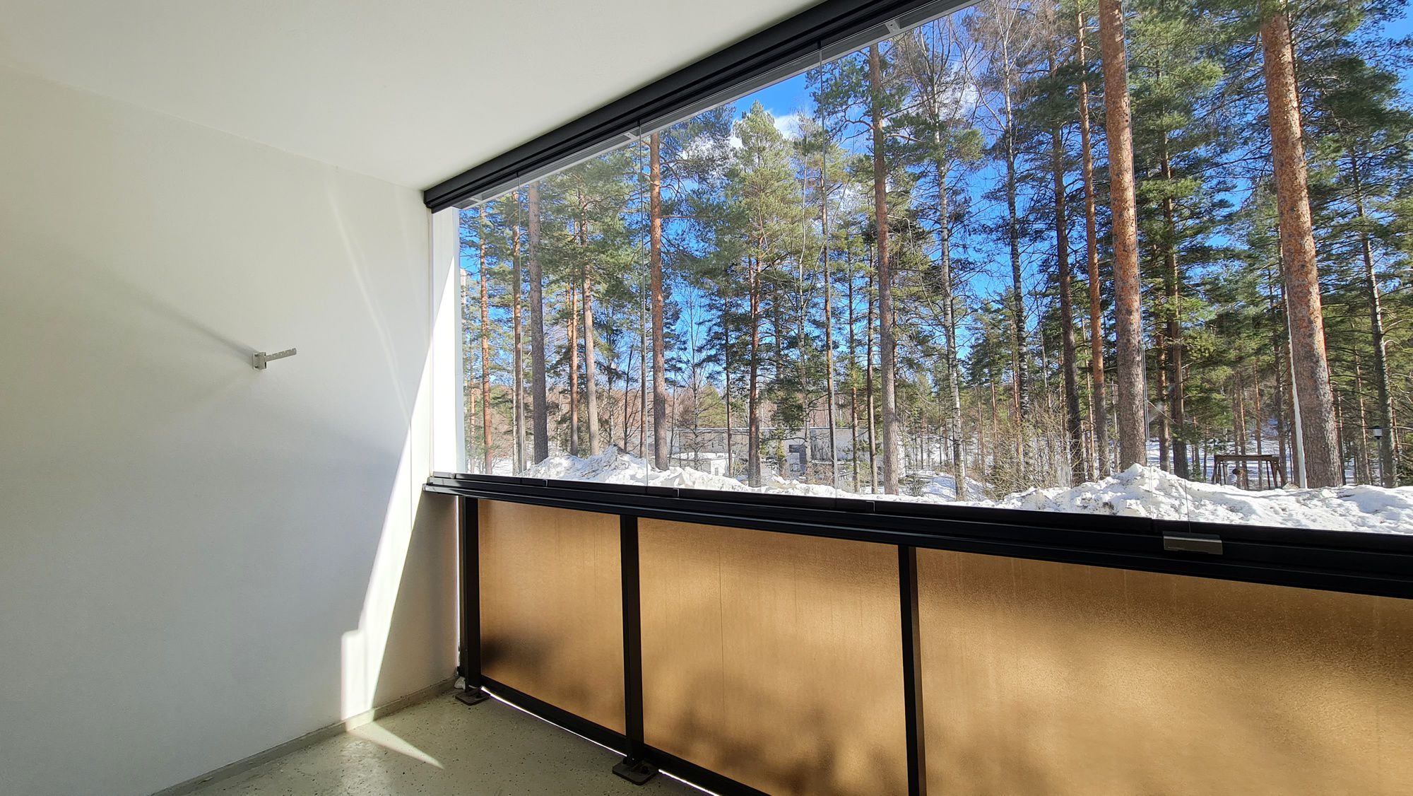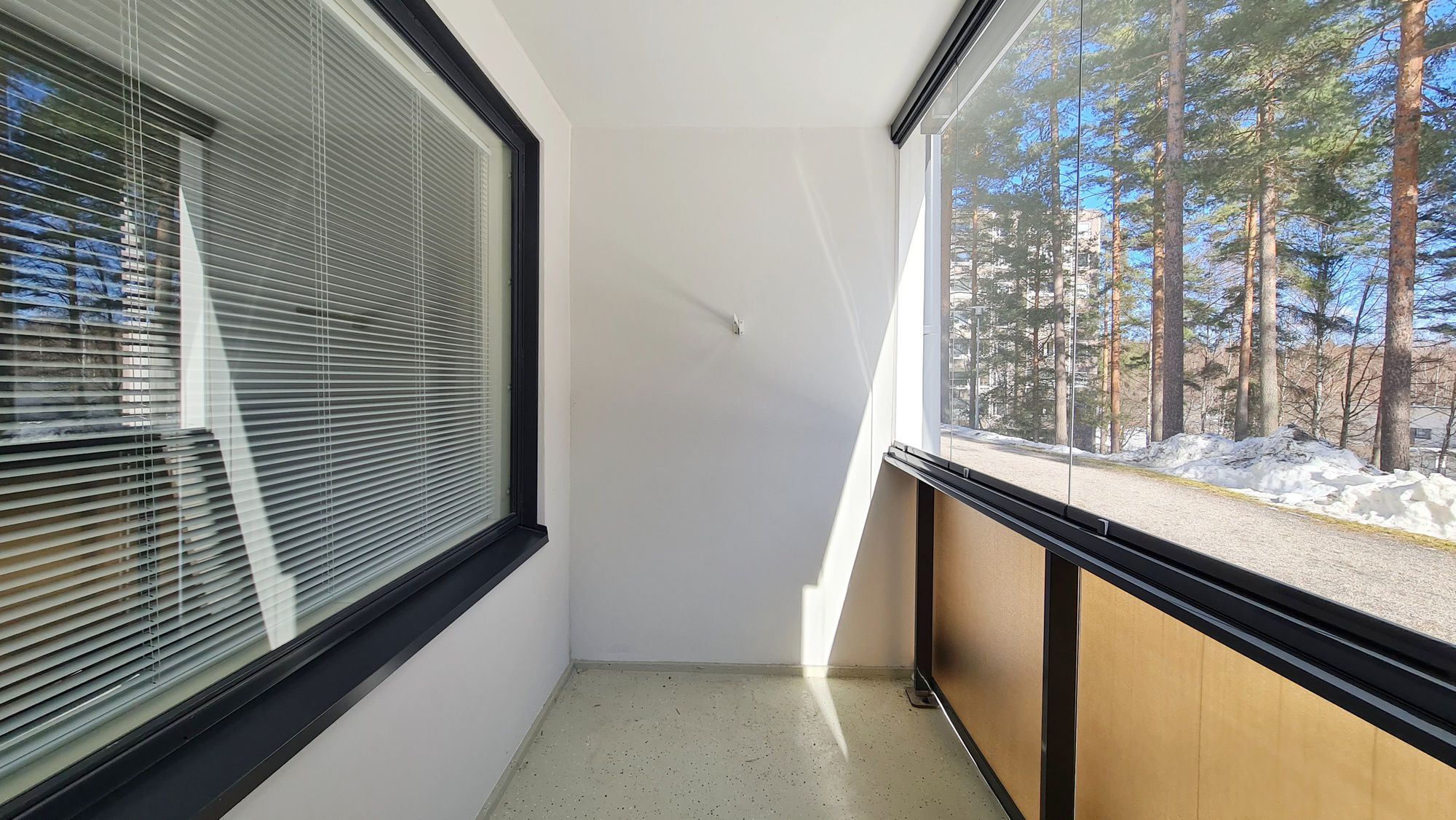 Ikkunat ja lasitettu parveke sisäpihalle, näkymät Kangaslammelle. Taloyhtiössä tehty käyttövesiputkistoremontti 2025.