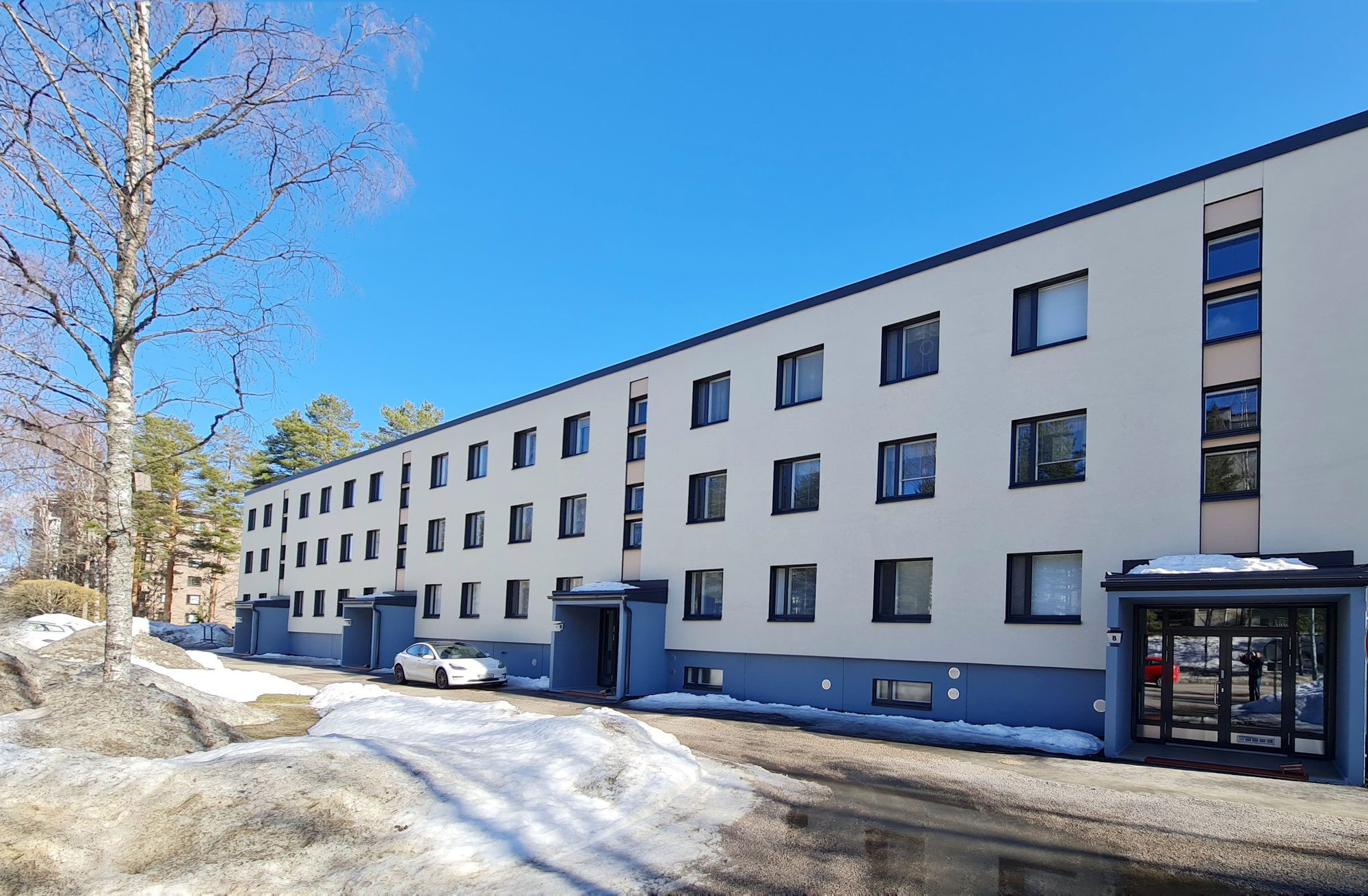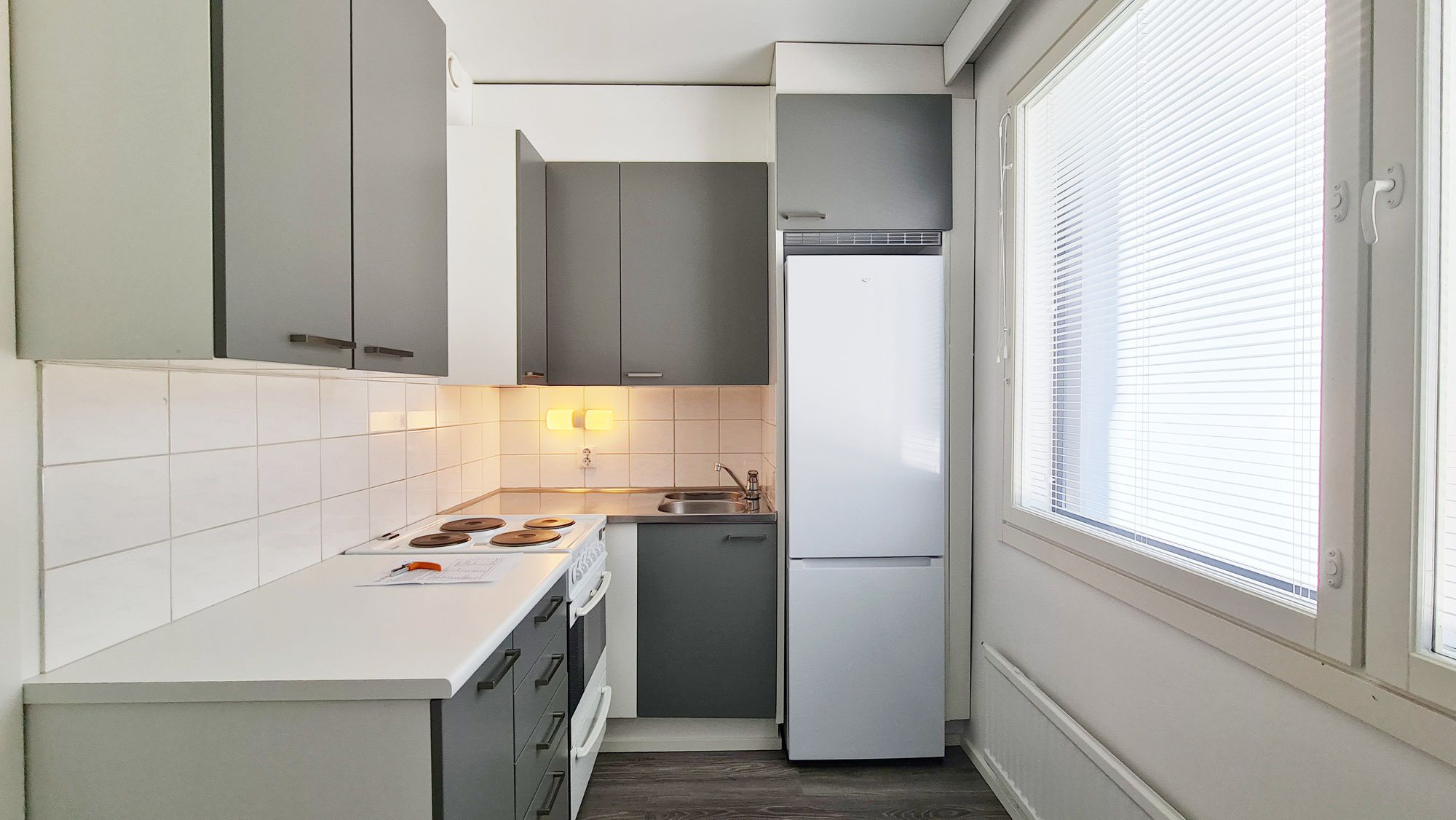 Lattiapinnaksi asennettu laminaatti, seinät maalattu ja keittiön kaapistot uusittu. Keittiössä jääkaappipakastin sekä kuvista poiketen uuni/keraaminen liesi ja liesituuletin. Asumismukavuutta tuo sälekaihtimet sekä erillinen vaatehuone.
