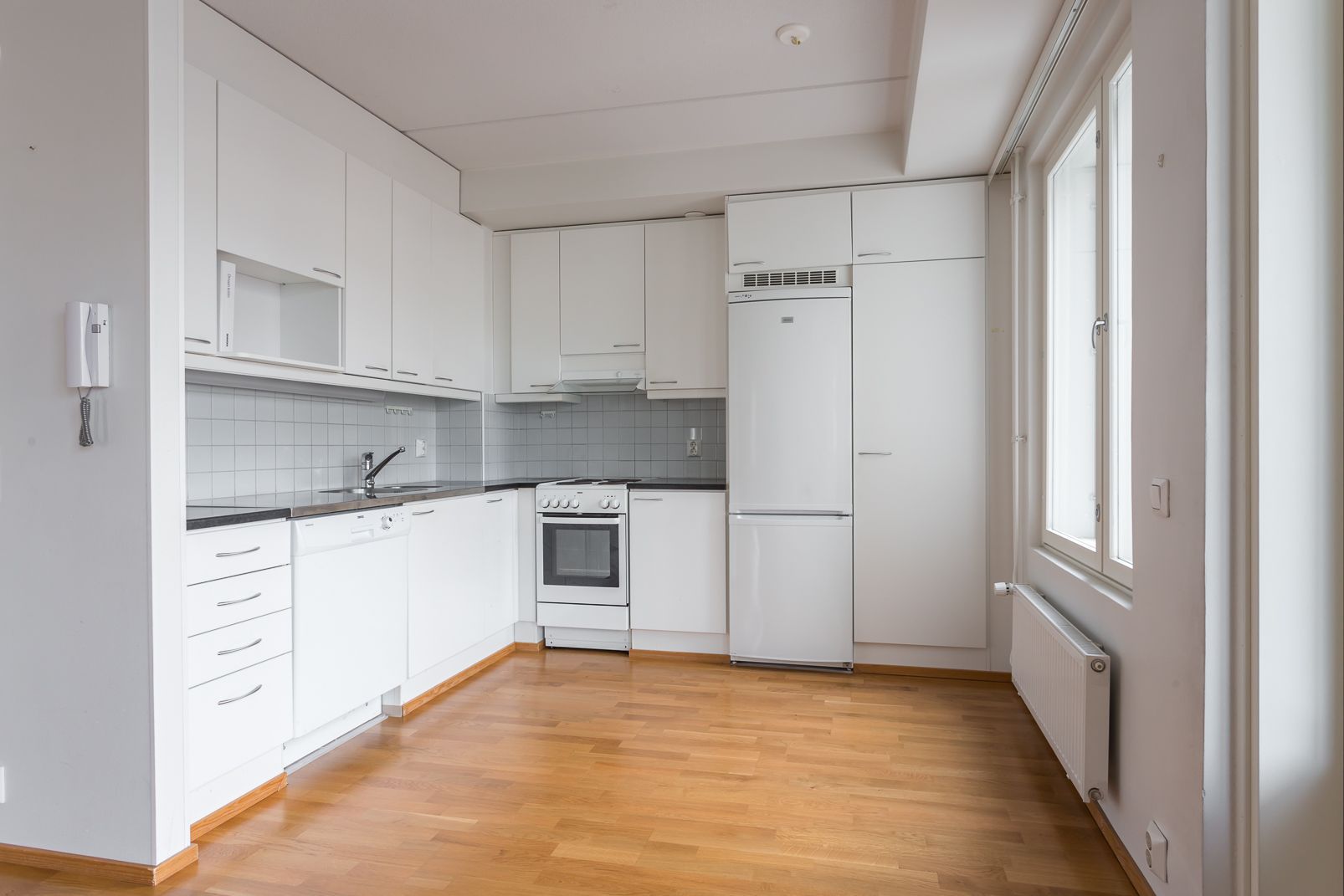 Asunnosta löytyy tilava parveke sekä sauna! Hyvin varusteltu keittiö; jääkaappipakastin sekä astianpesukone. Kylpyhuoneessa tila ja liitäntä pesukoneelle.