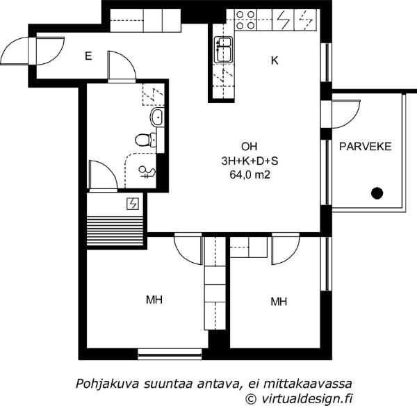 Kerrostalo, 64,5 m², 3h + k + s + parveke