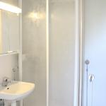 Kylpyhuoneessa paikka päältätäytettävälle pesukoneelle.