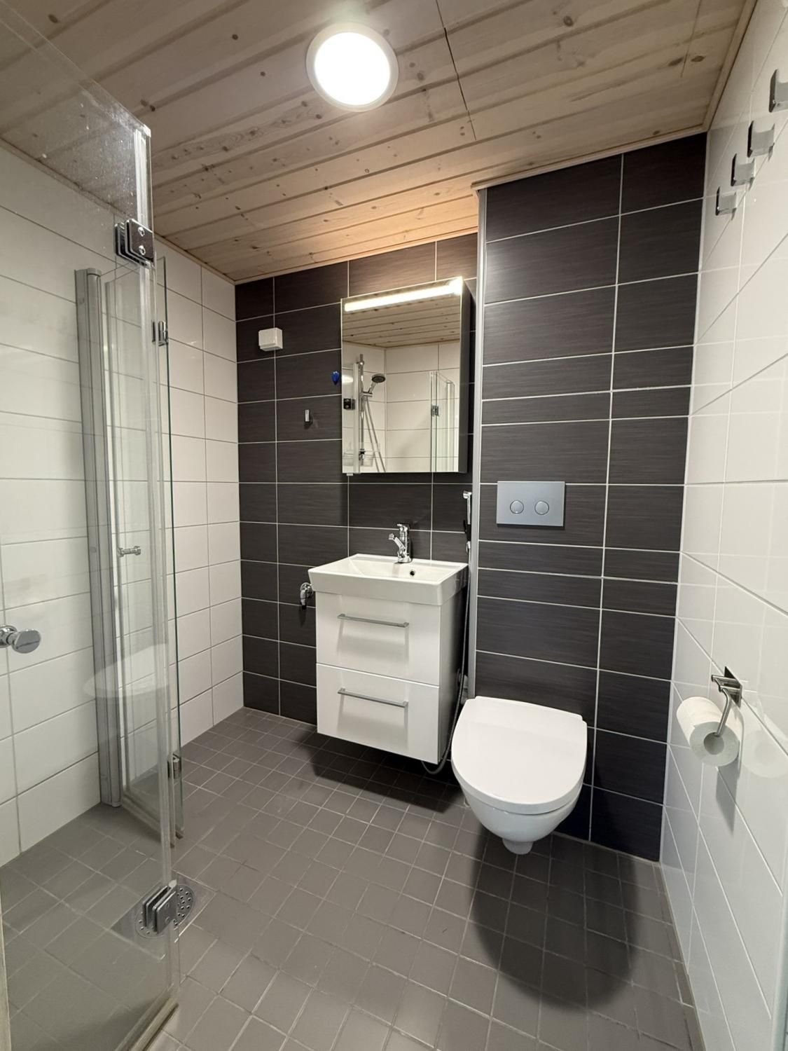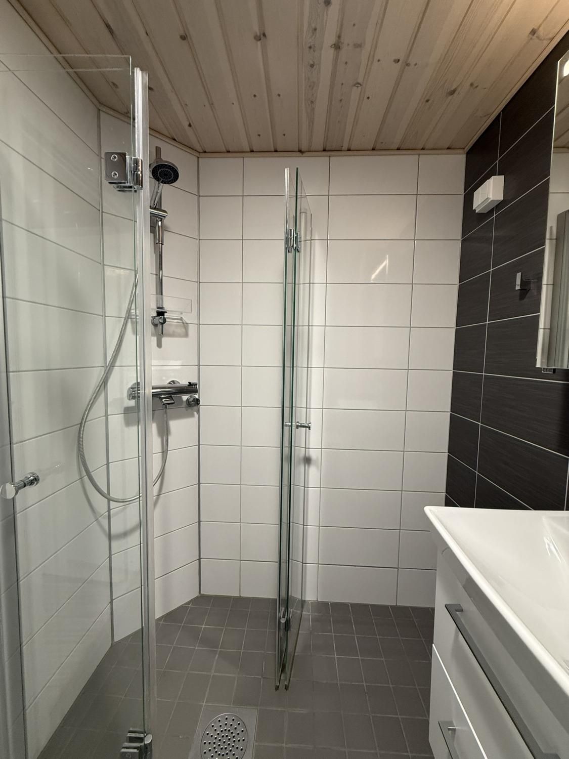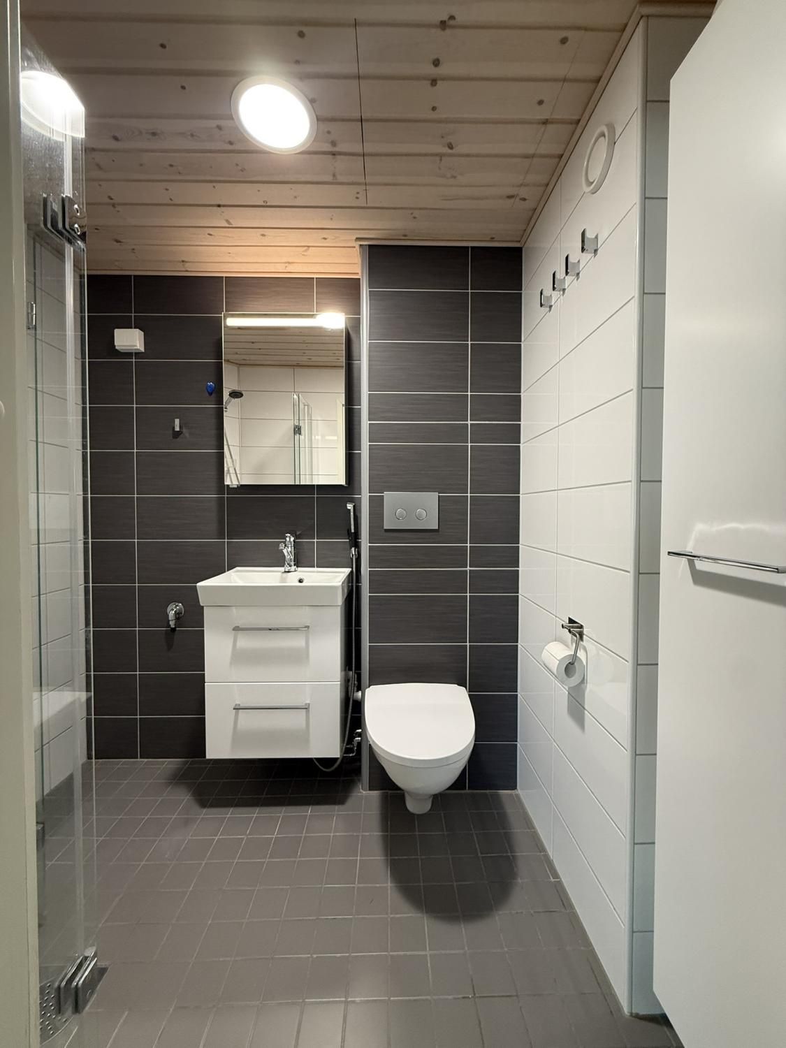 Keittiössä on valmiina jääkaappipakastin, liesi, liesituuletin sekä astianpesukone. Keittiöön saat myös ruokaryhmän. Kiinteää kaapitilaa on reilusti eteisessä ja makuuhuoneessa.