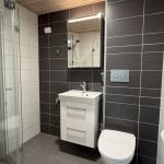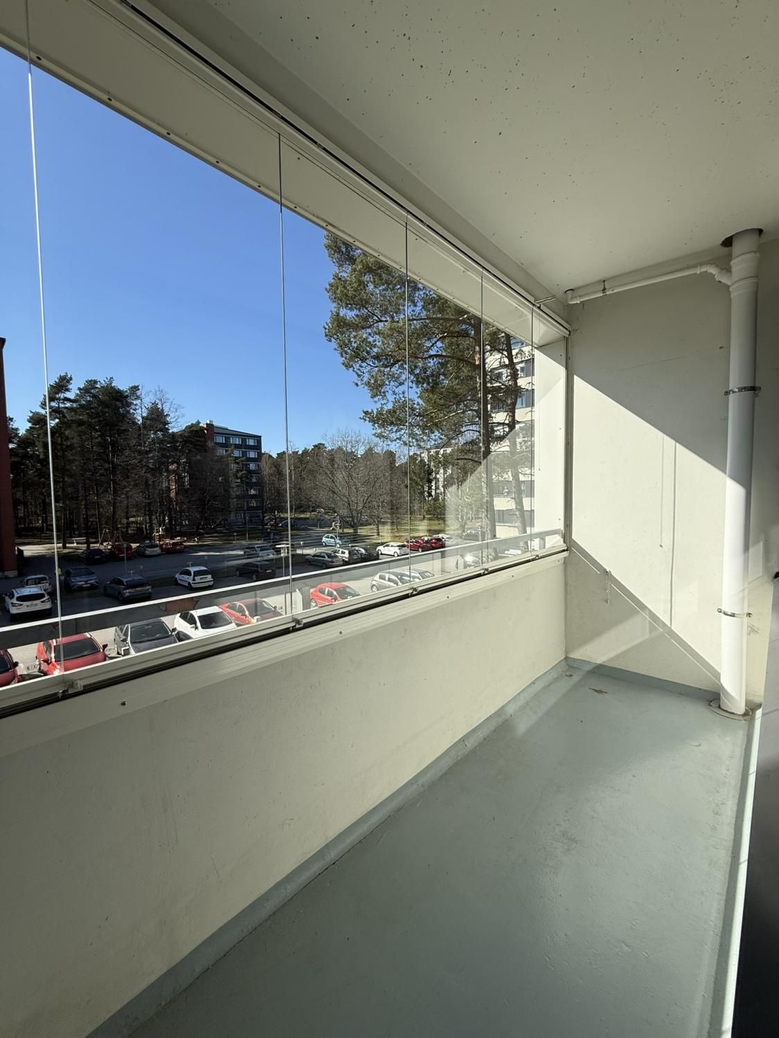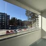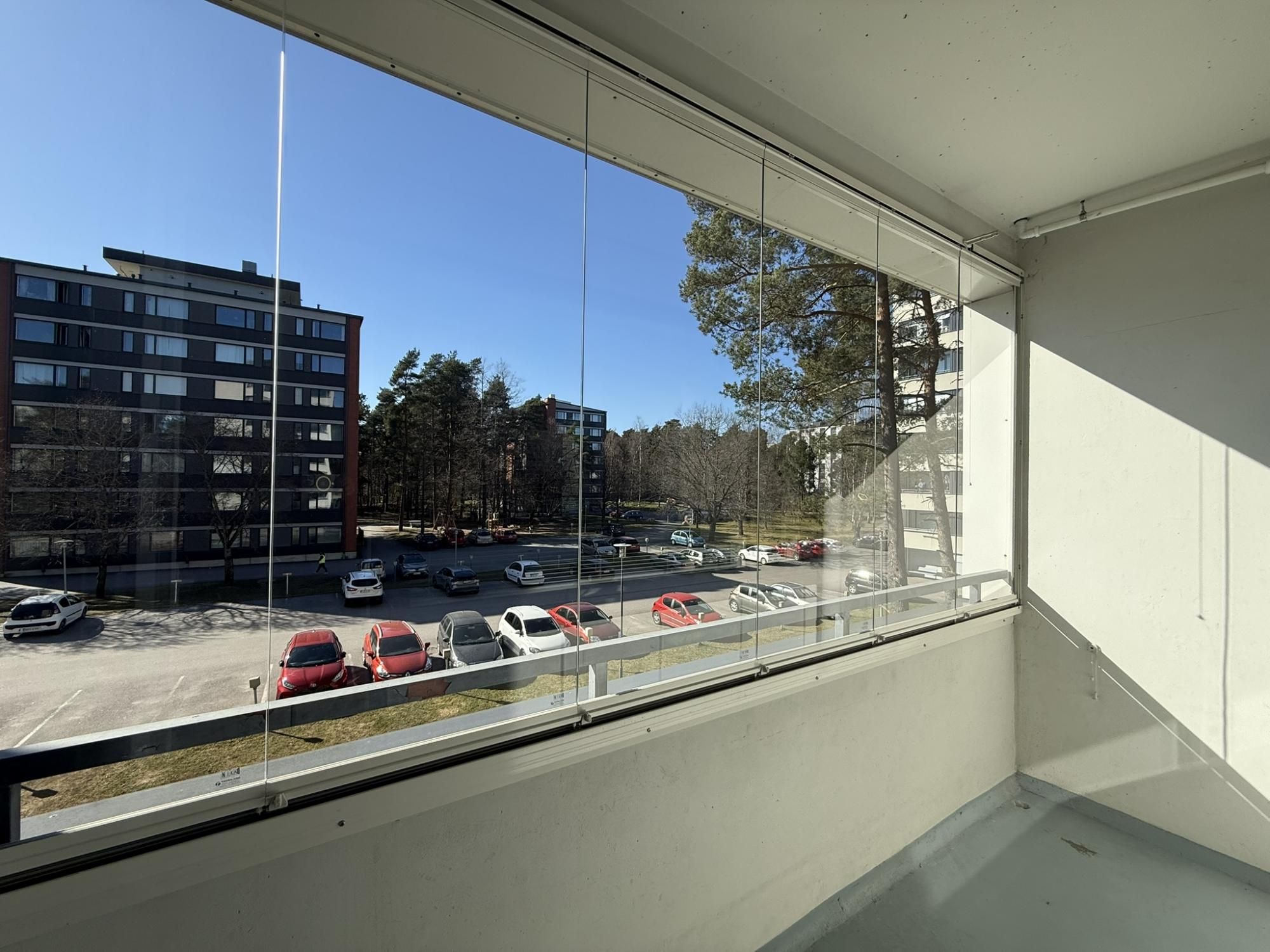 Olohuoneen yhteysessä on lasitettu parveke. Kylpyhuoneeseen mahtuu pyykinpesukone.