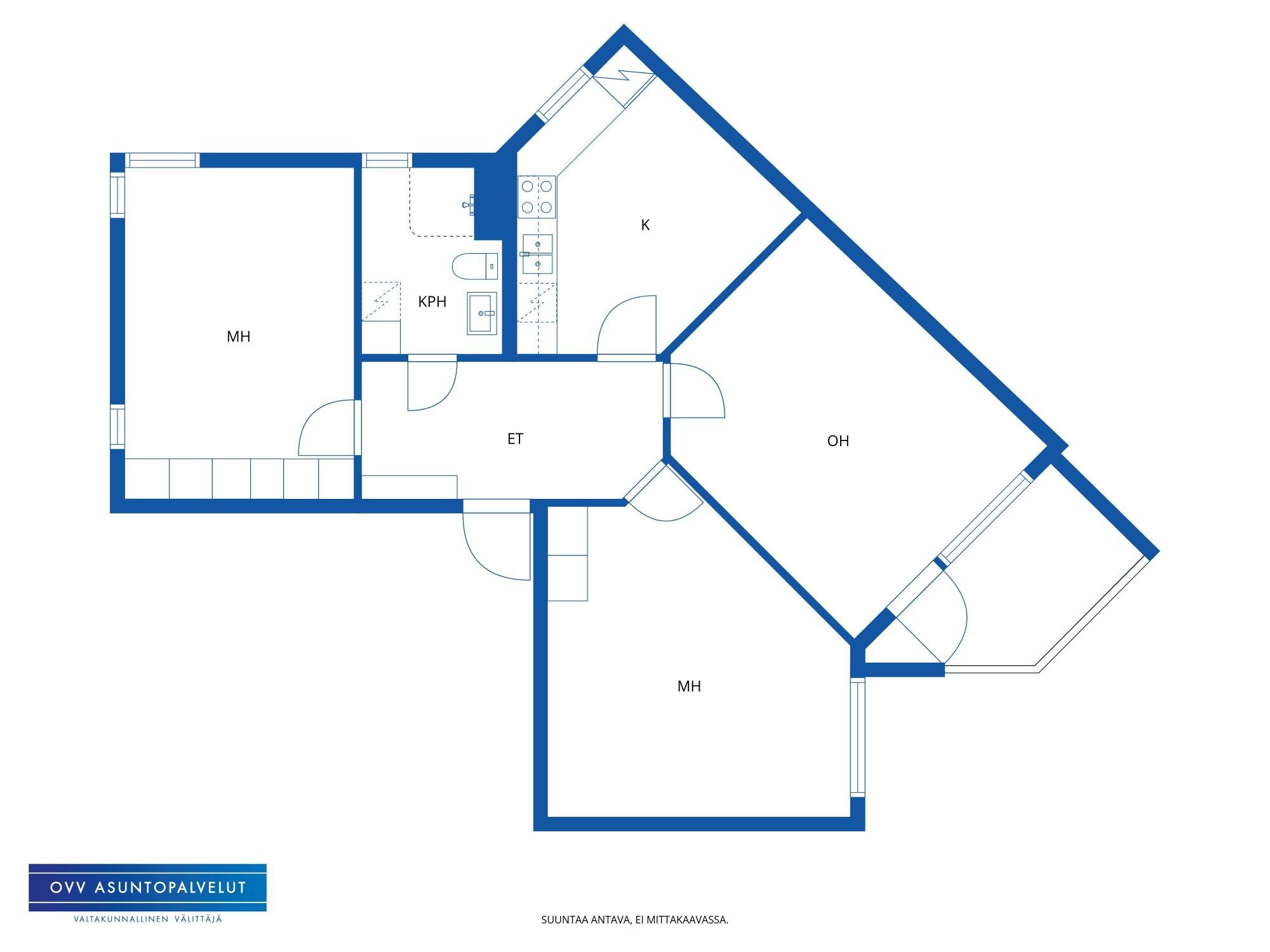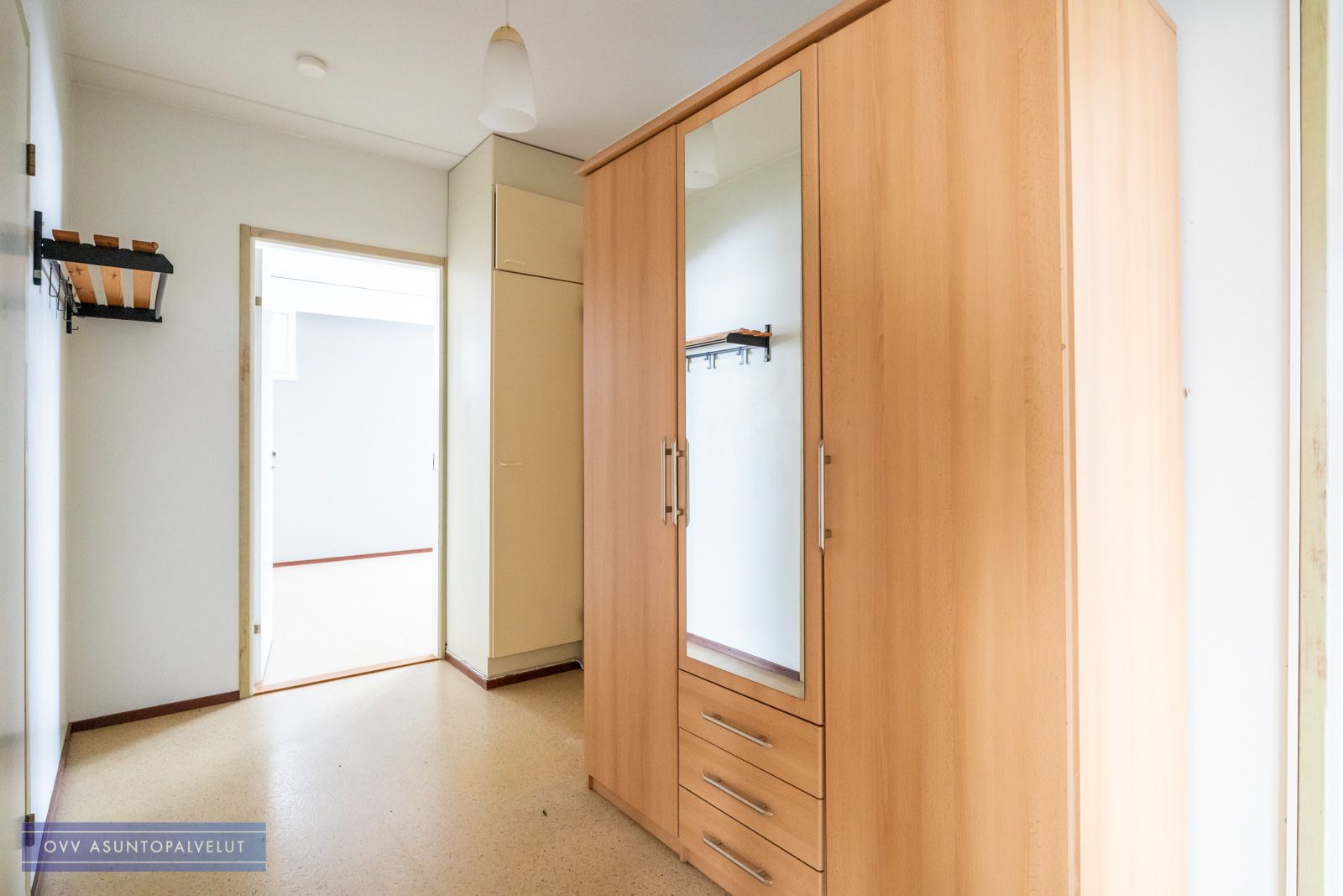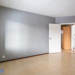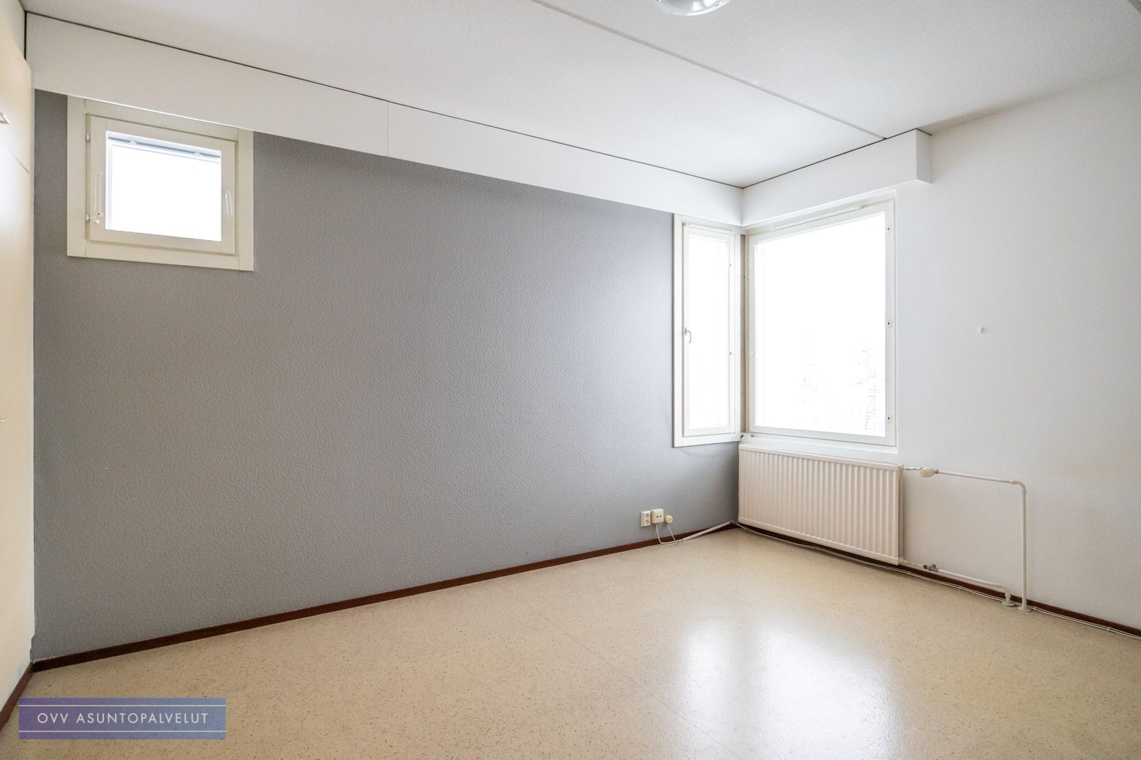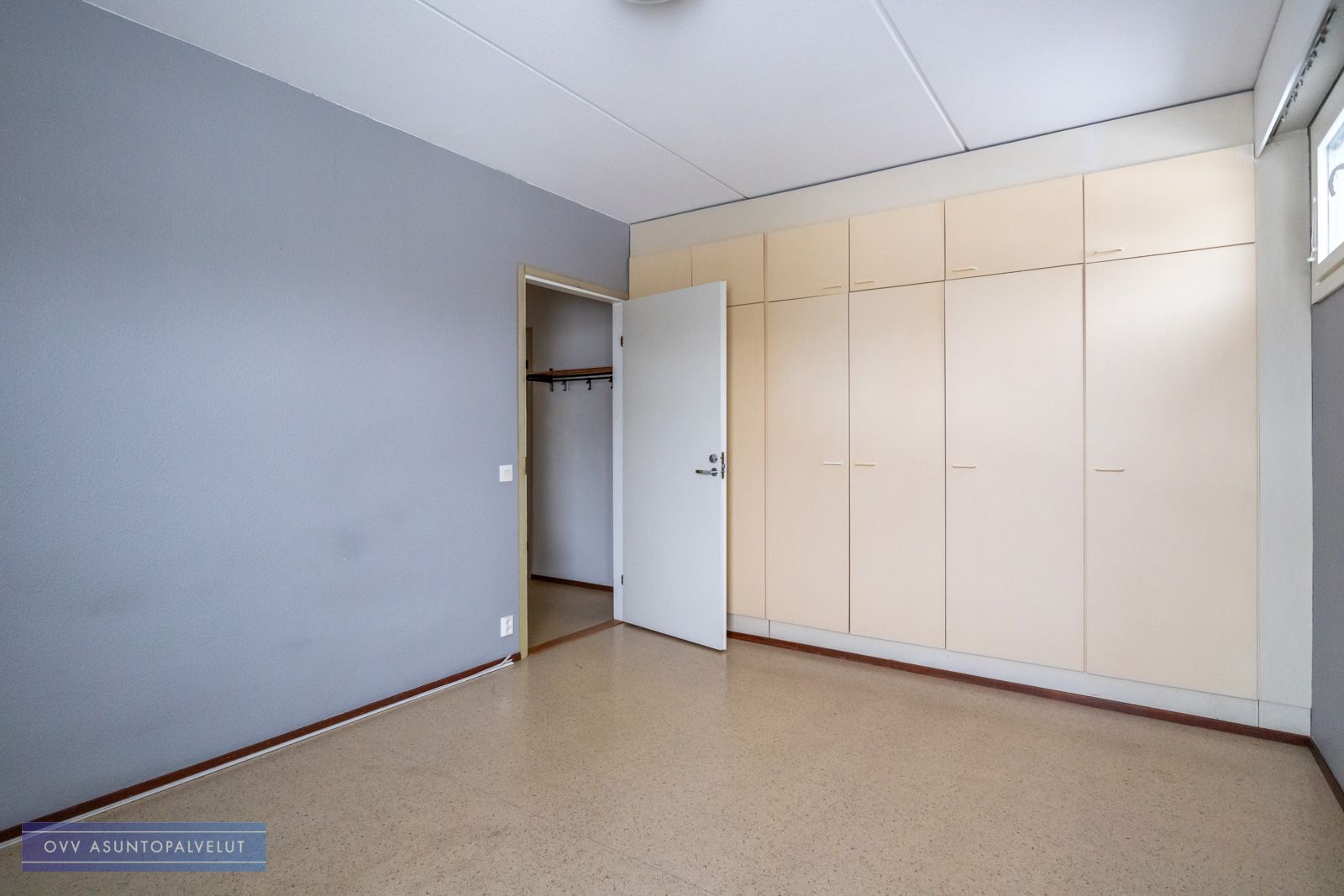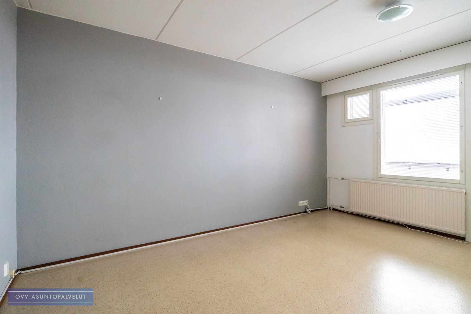 Asunnon pohjaratkaisu on erittäin selkeä. Jokainen huone on lukollisen oven takana, joten tarvittaessa asunnossa voisi olla jopa 3 makuuhuonetta sekä keittiö ja kylpyhuone. Yhdestä huoneesta käynti parvekkeelle, jonne juuri valmistuneessa julkisivuremontissa on lisätty lasitukset.
