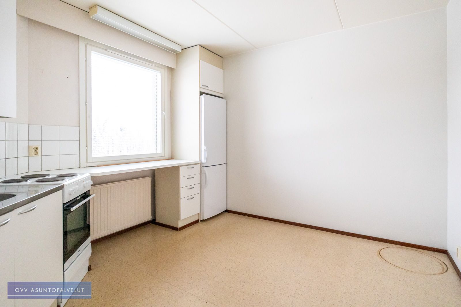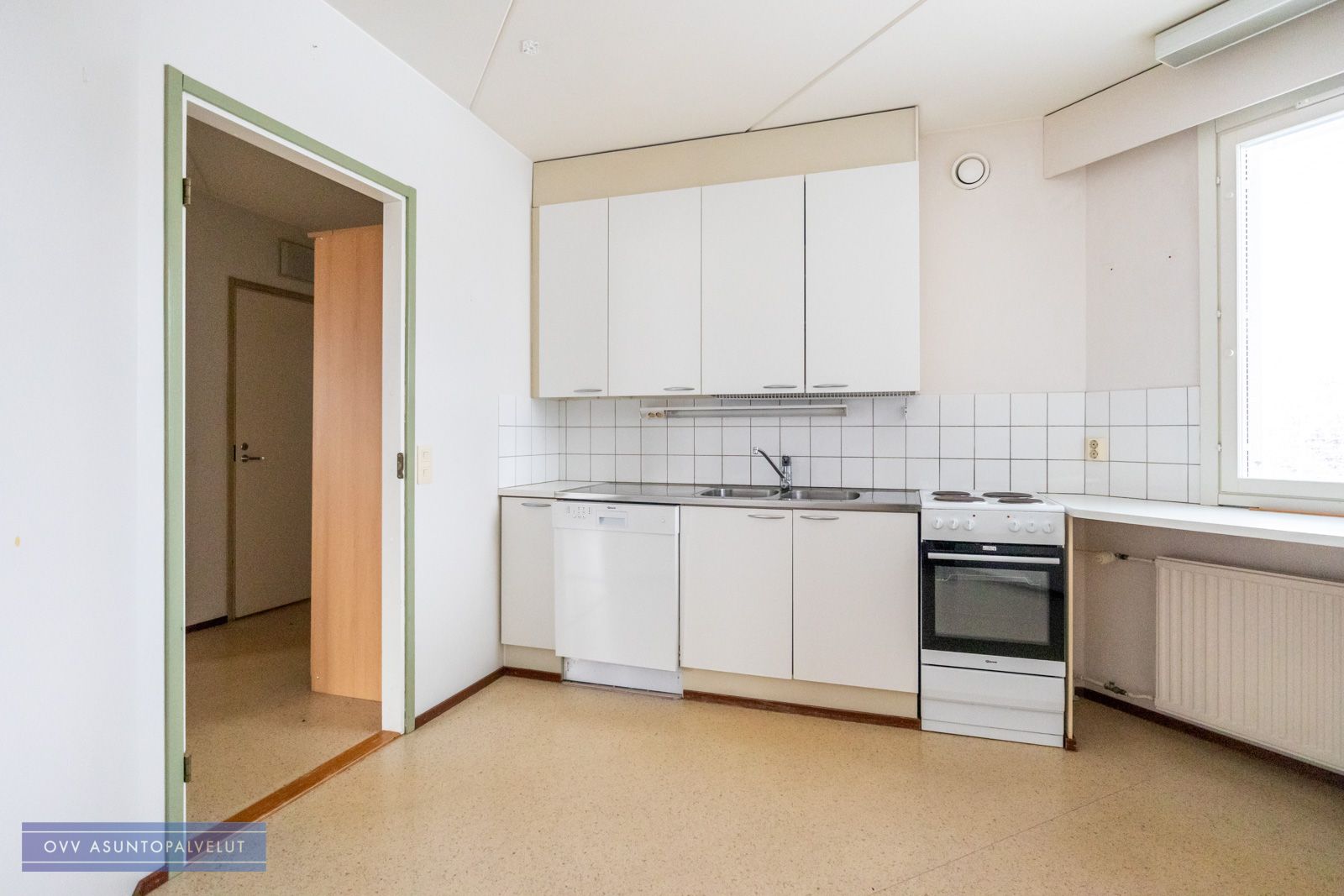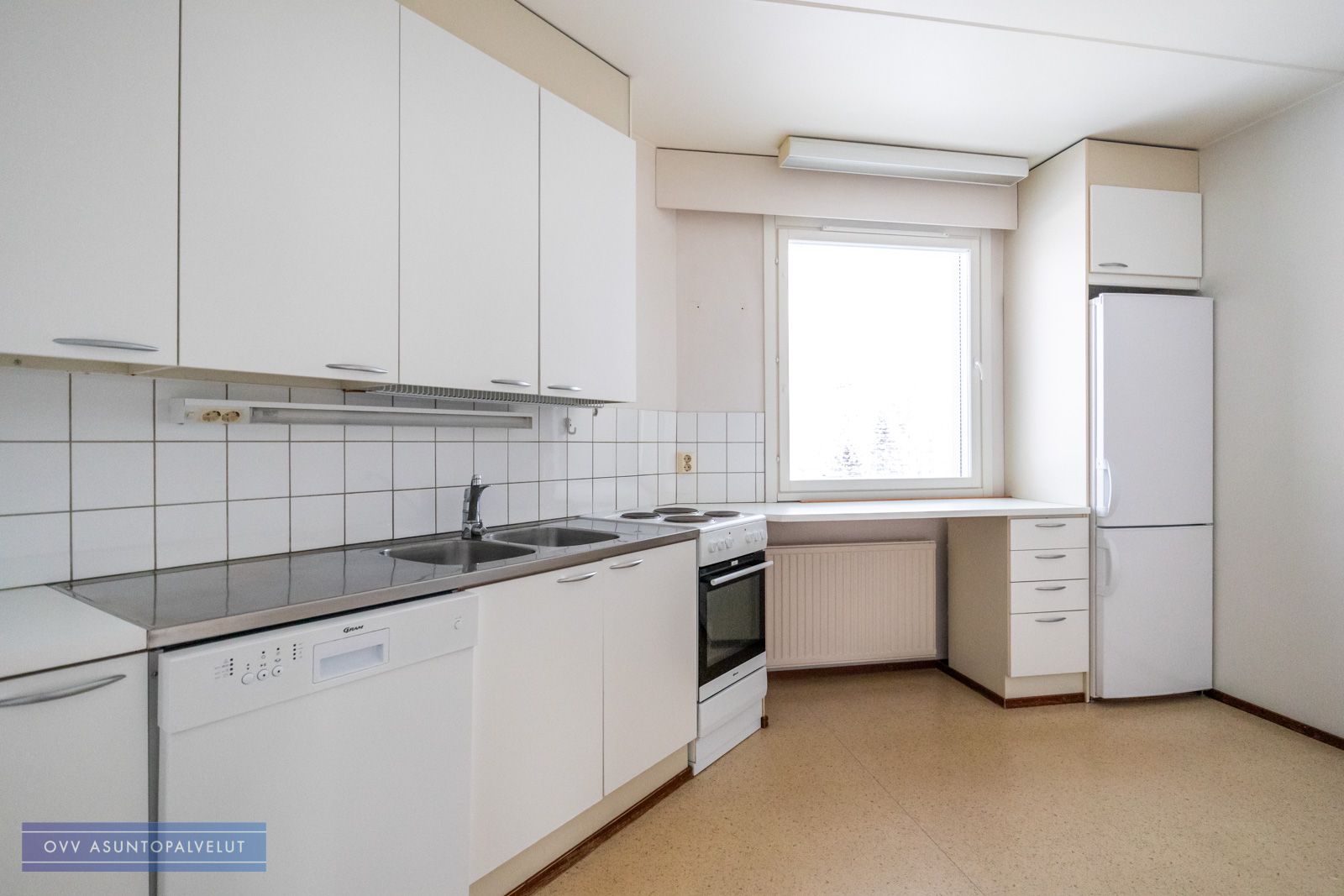 Keittiössä on uusittu kaapinovet sekä kodinkoneita. Varusteista löytyy tilava jääkaappi-pakastin sekä uusi liesi ja astianpesukone. Keittiössä tilaa ruokailuryhmälle.