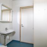 Kylpyhuoneeseen mahtuu pyykinpesukone ja sille löytyy liittimet.