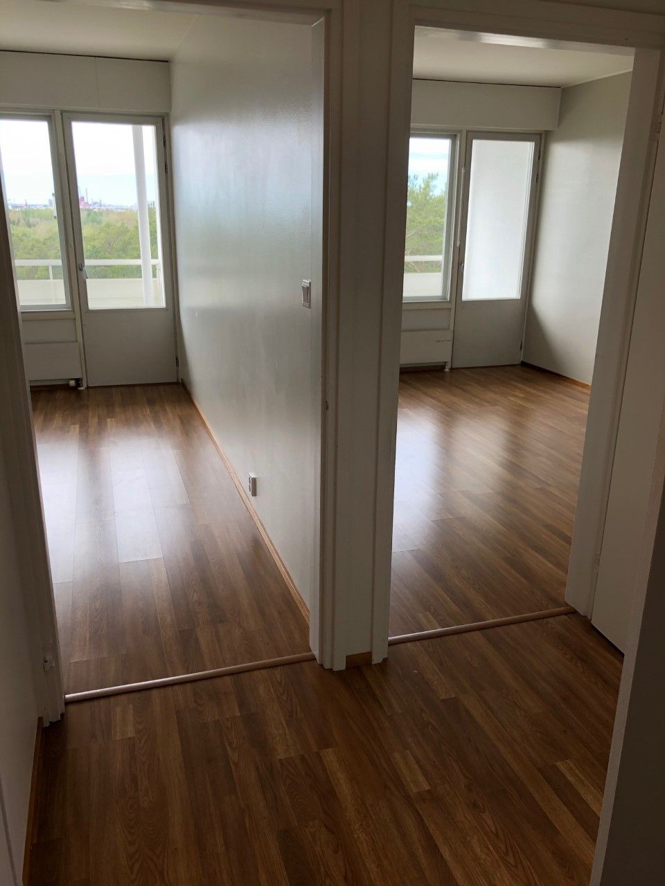 Laminaattilattiat, seinät maalipinnoin.