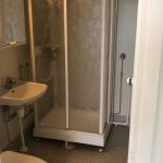 Kylpyhuoneessa paikka päältätäytettävälle pyykinpesukoneelle.