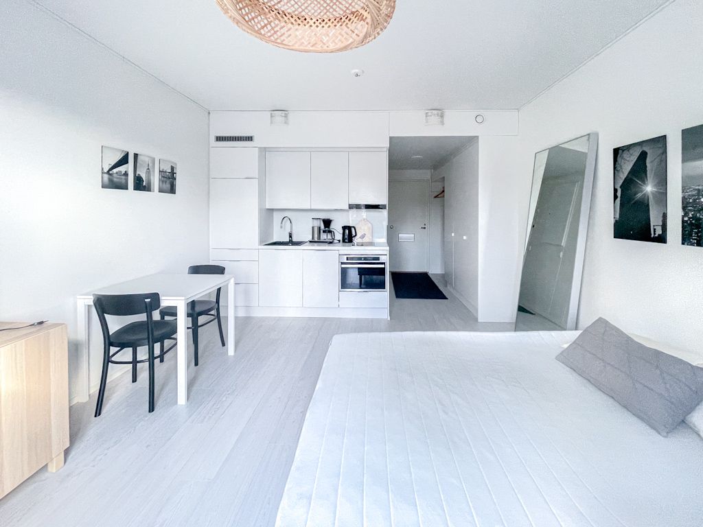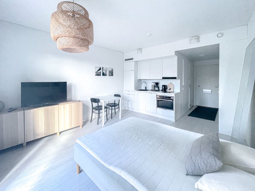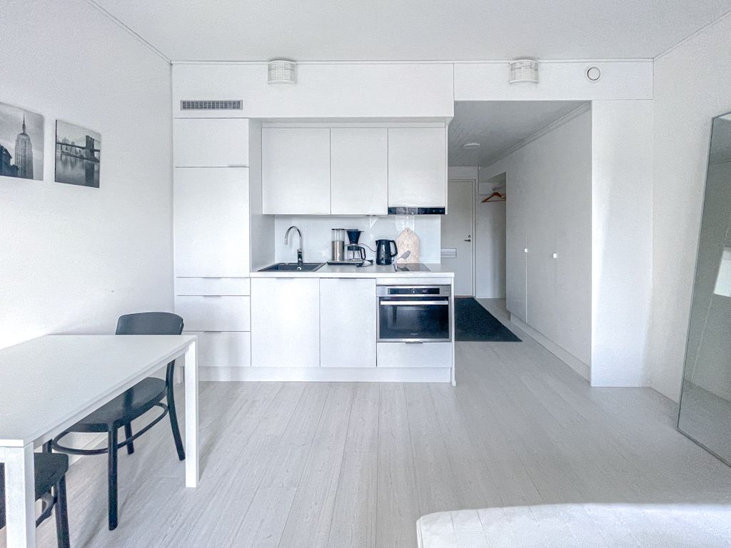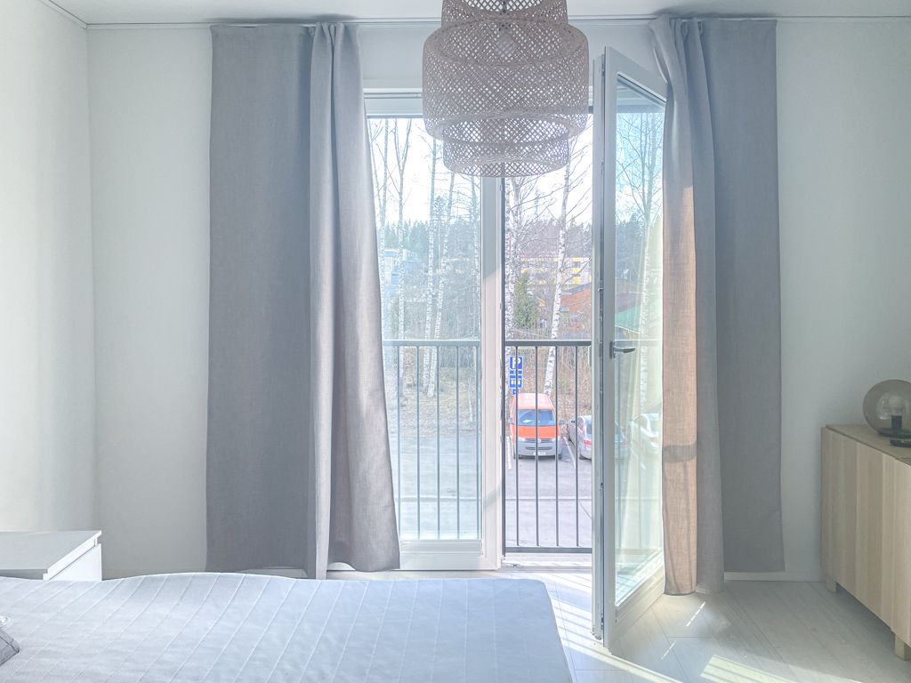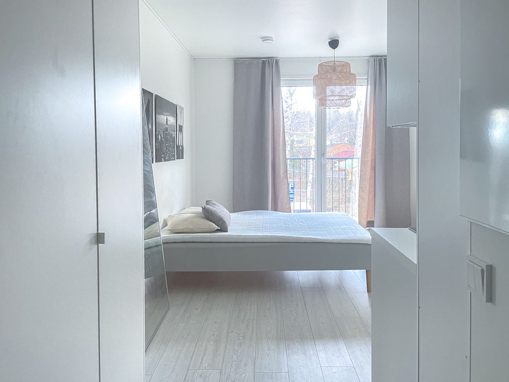 Uudenveroinen ja tyylikäs, kalustettu koti vuoden 2019 loppupuolella valmistuneessa pienkerrostalosta. Ranskalaisen parvekkeen suuret avattavat ikkunat/lasiovet tuovat avaruutta asuntoon. Tässä 2. kerroksen asunnossa on miellyttävä vesikiertoinen lattialämmitys. Keittiötasossa on integroidut kodinkoneet (mm. jääkaappipakastin, astianpesukone), kylpyhuoneessa on pyykkikone valmiina. Asunto vuokrataan kalustettuna kuvissa näkyvillä kalusteilla.