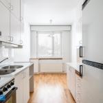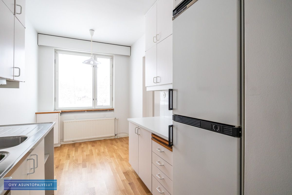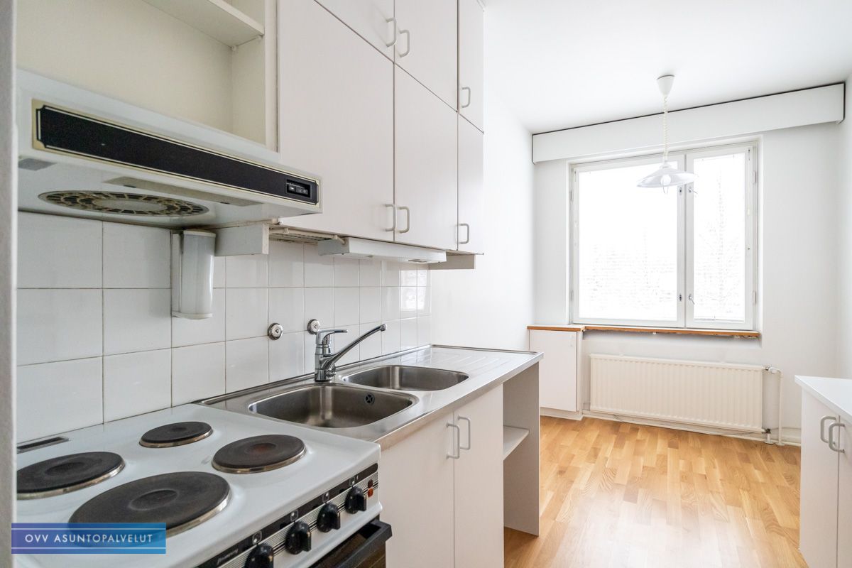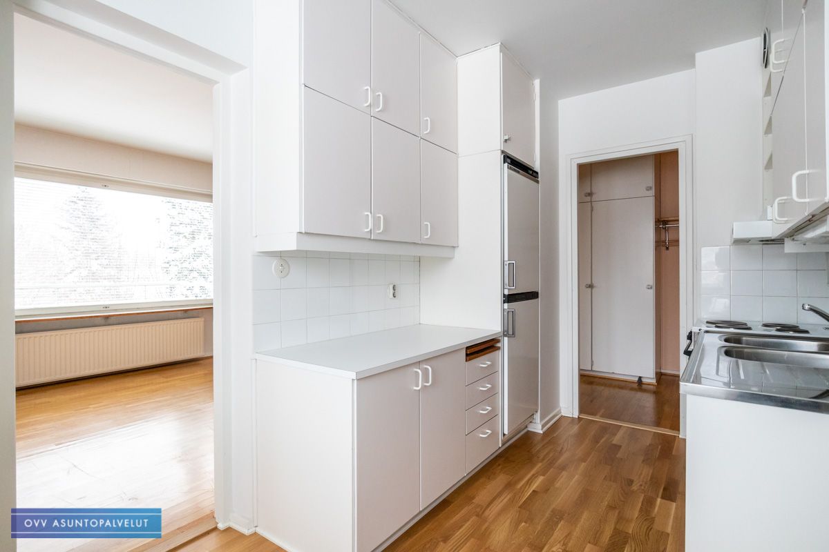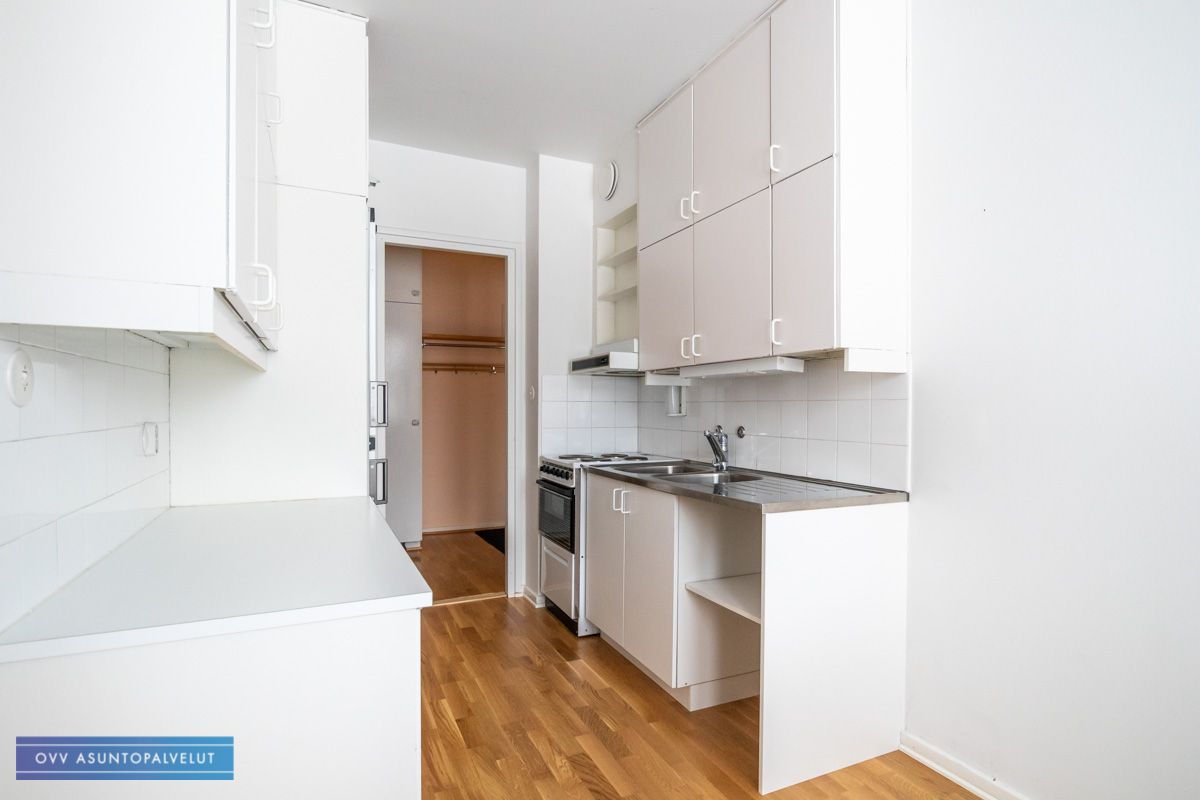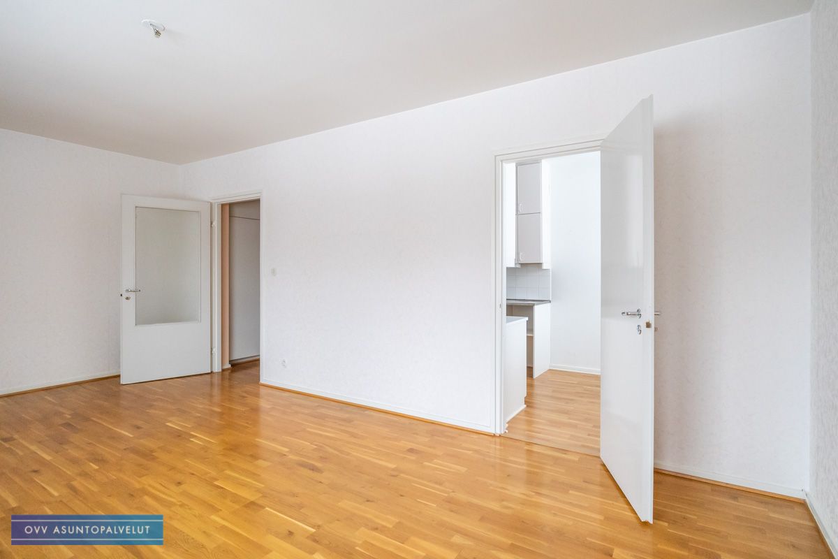 Asunnossa tilava olohuone, josta käynti isolle parvekkeelle. Keittiössä tilaa pienelle ruokailuryhmälle ja lisäksi hyvin kaappitilaa. Kaapistossa paikka astianpesukoneelle.