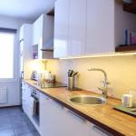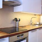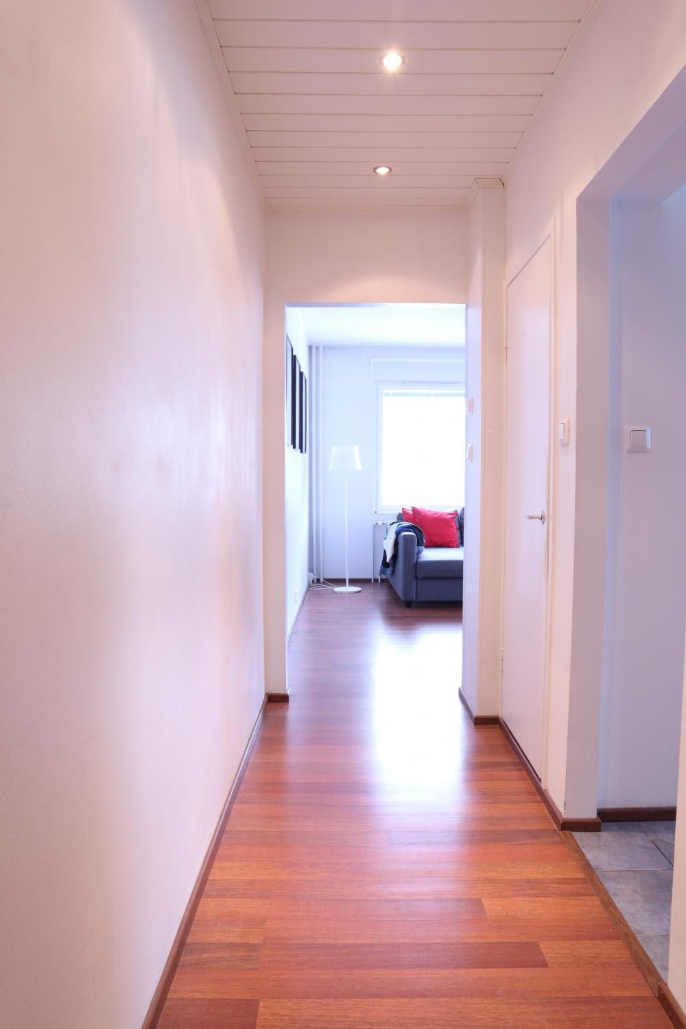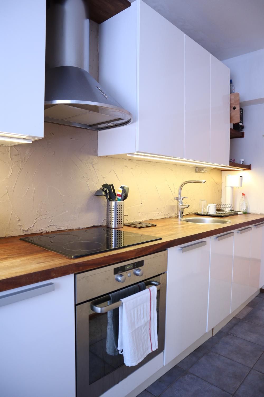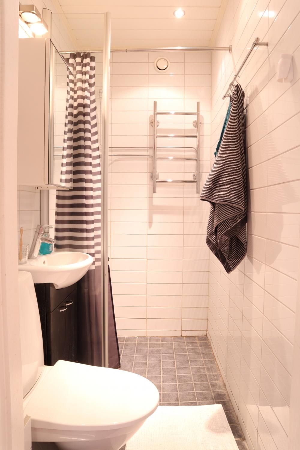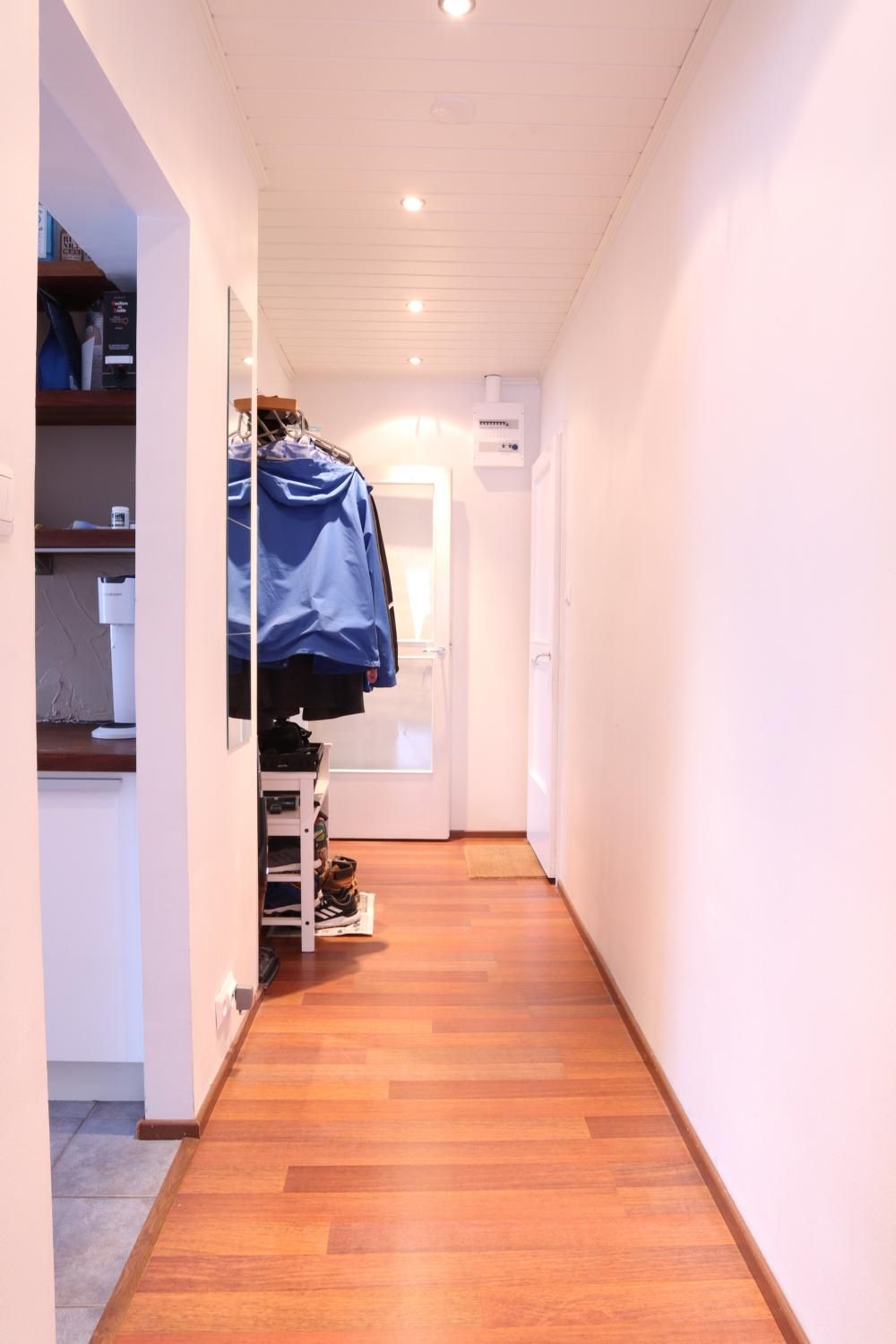 Eteisestä on suoraan käynti makuuhuoneeseen. Makuuhuoneessa on kiinteää kaappitilaa. Keittiö on hyvässä kunnossa ja persoonallisuutta luo välitilan betonitasoite. Keittiö on varusteltu kattavasti – astianpesukone sekä pyykinpesukone ovat valmiina. Ruokaryhmälle on oma tila keittiössä. Kylpyhuoneessa on tyylikkään sävyiset laatat ja myös pyyhekuivain on valmiina.