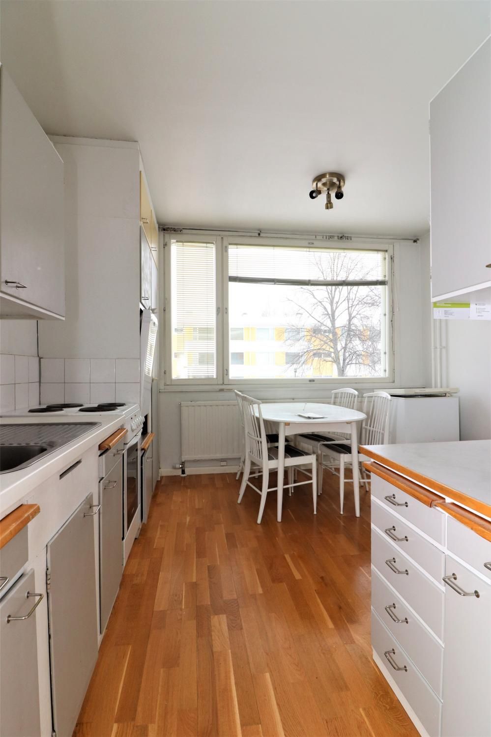 Hyvällä ja rauhallisella paikalla sijaitseva läpitalon huoneisto lasitetulla parvekkeella. Sopii pohjaratkaisultaan pariskunnalle tai vaikka kahdelle kimppa-asumiseen (molemmissa huoneissa ovet). Erillisestä keittiöstä löytyy mukavasti kaappitilaa, jääkaappipakastin, liesi, astianpesukone sekä tilaa ruokapöydälle. Eteisen kaappien lisäksi säilytystilaa tuo oma vaatehuone. Kylpyhuone on remontoitu. Huoneistossa pyötä ja tuolit vuokralaisen käytössä. Asunto kuvattu ennen nykyisiä vuokralaisia. Kuvista poiketen keittössä on liesituuletin.