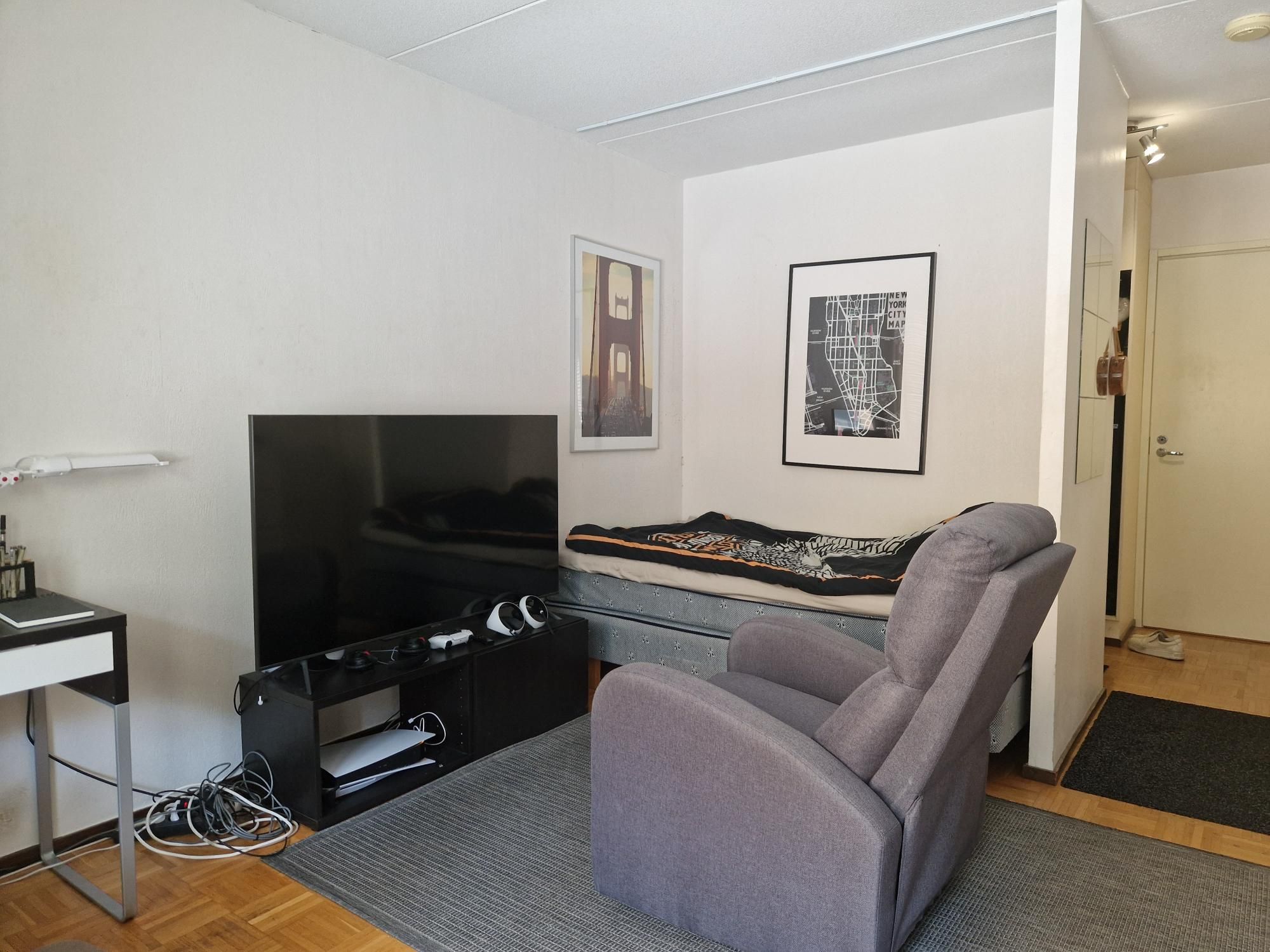 Kaarinan keskustasta vapautuu yksiö kaikilla mausteilla. Asunnon pohjaratkaisu on erinomainen. Eteisessä on kiinteää kaappitilaa sekä lisäksi vaatehuone. Alkovi tarjoaa oman tilan sängylle ja näin ollen tilaa jää somistaa olohuone vaivattomasti. Lasitettu ja iso parveke tarjoaa rauhallisen – puistomaisen näkymän taloyhtiön sisäpihalle. Keittokomero on kodikas ja ikkuna antaa valoisuutta. Kylpyhuoneessa on tila ja liitäntä pyykinpesukoneelle. Lisäksi harvassa yksiössä on oma sauna. Tähän saunaan mahtuu kaverikin mukaan!
