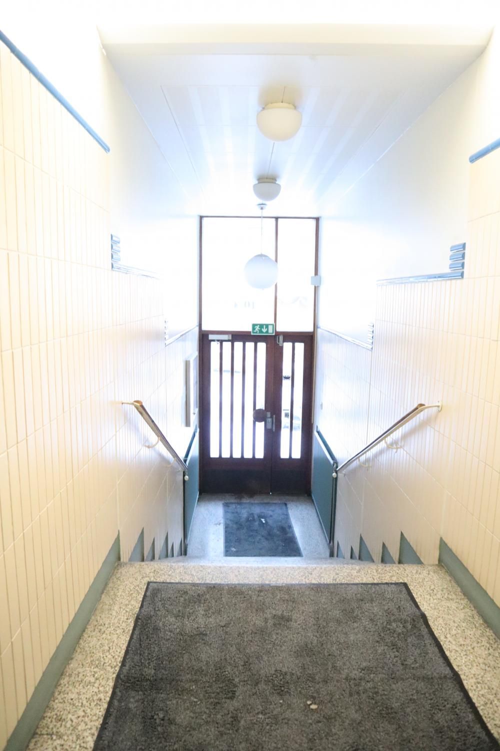 Olohuoneen yhteydessä on lasitettu parveke sisäpihan suuntaan. Toinen makuuhuone on Kauppiaskadulle ja toinen pienempi makuuhuone sisäpihalle.