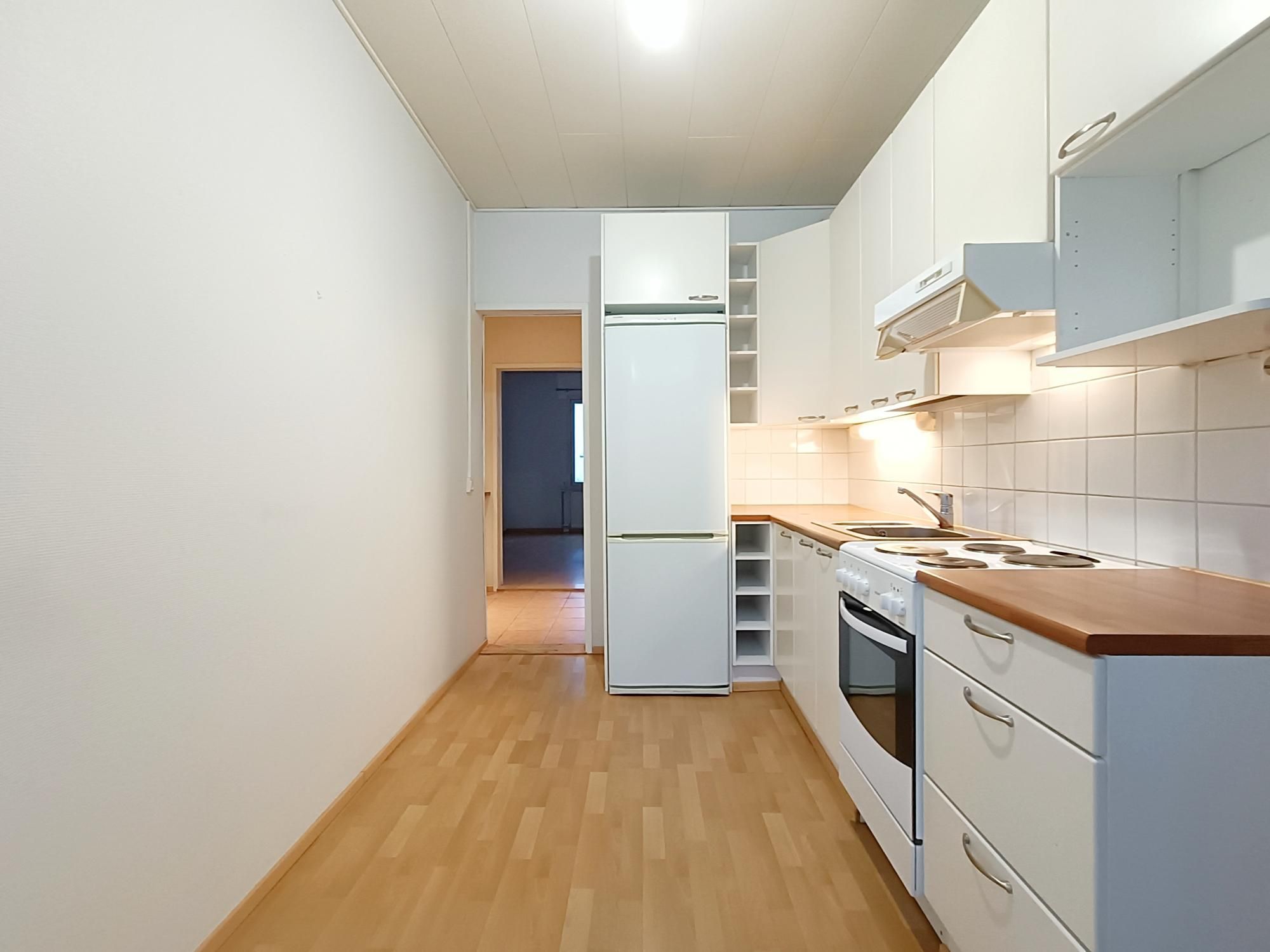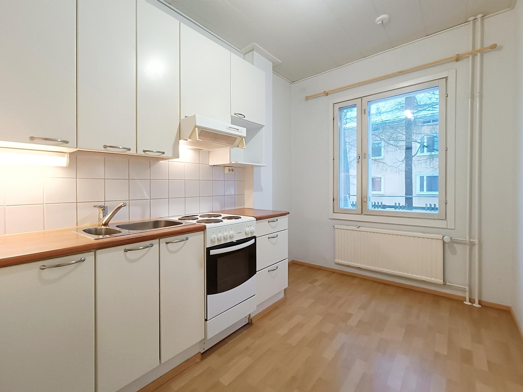 Asuntoa on remontoitu vuosien varrella, joten kunto on kauttaaltaan hyvä. Laminaattilattiat. Tilava keittiö tarjoaa hyvät puitteet kokkailusta kiinnostuneelle.
