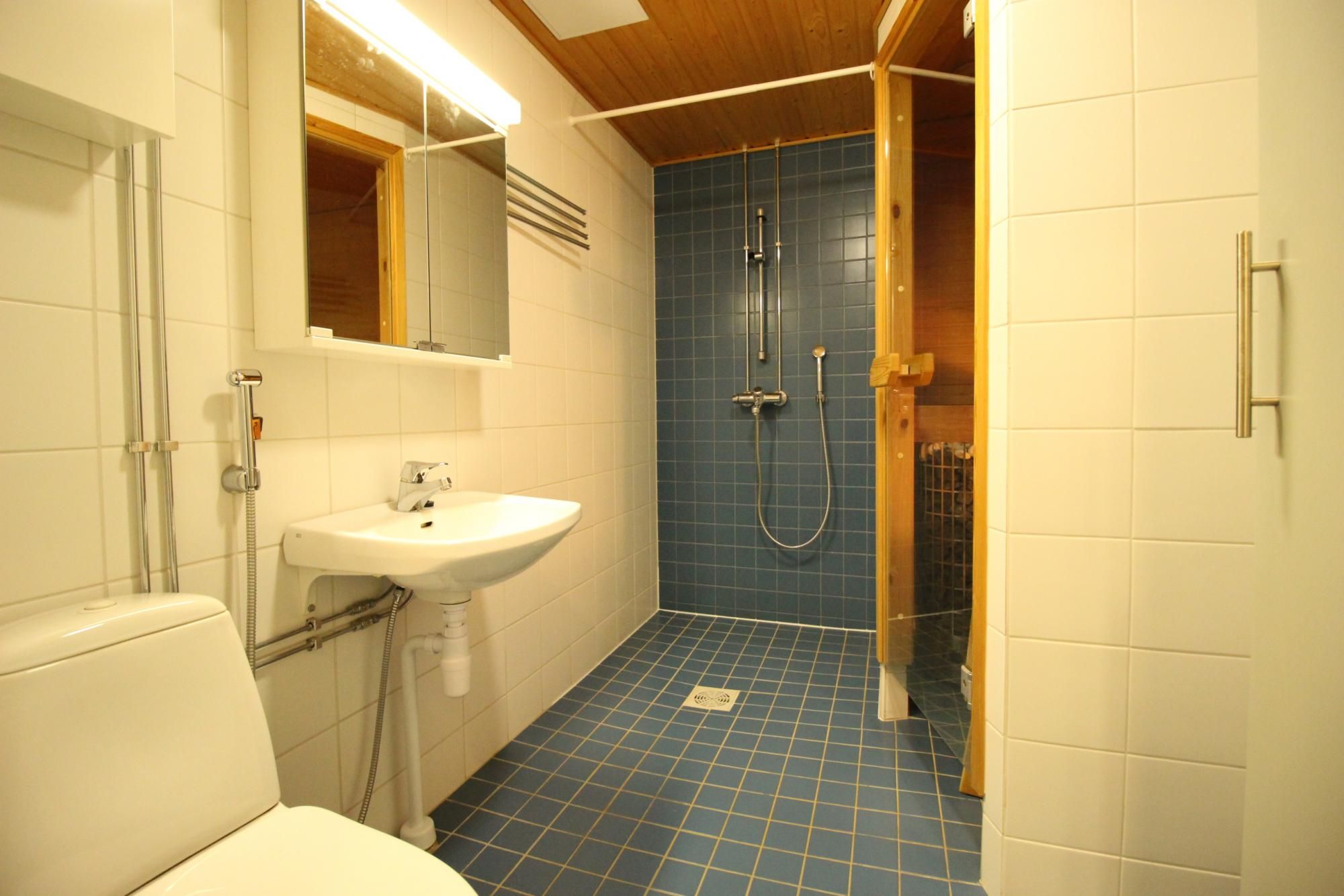Kylpyhuoneessa paikka pyykinpesukoneelle.