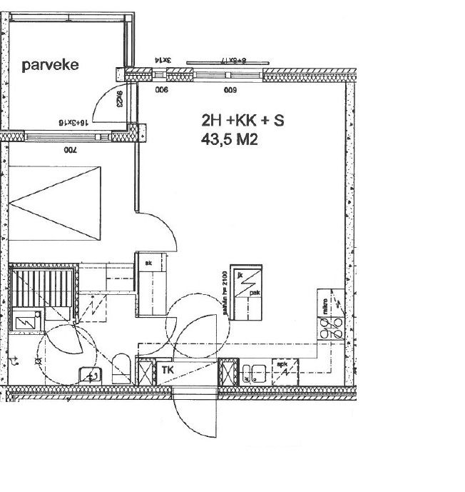 Kerrostalo, 43,5 m², 2h,k,kh,s,p(lasit),autohallipaikka