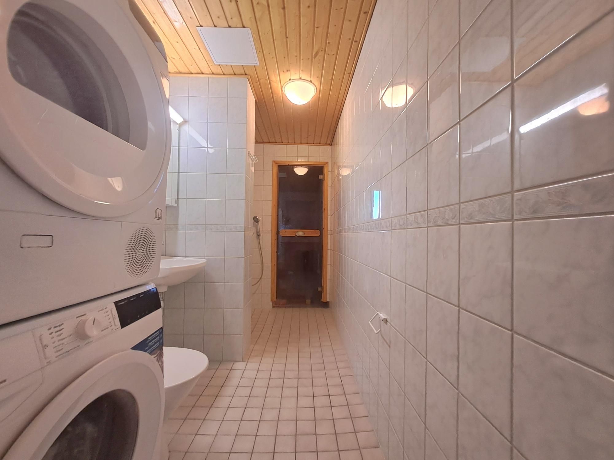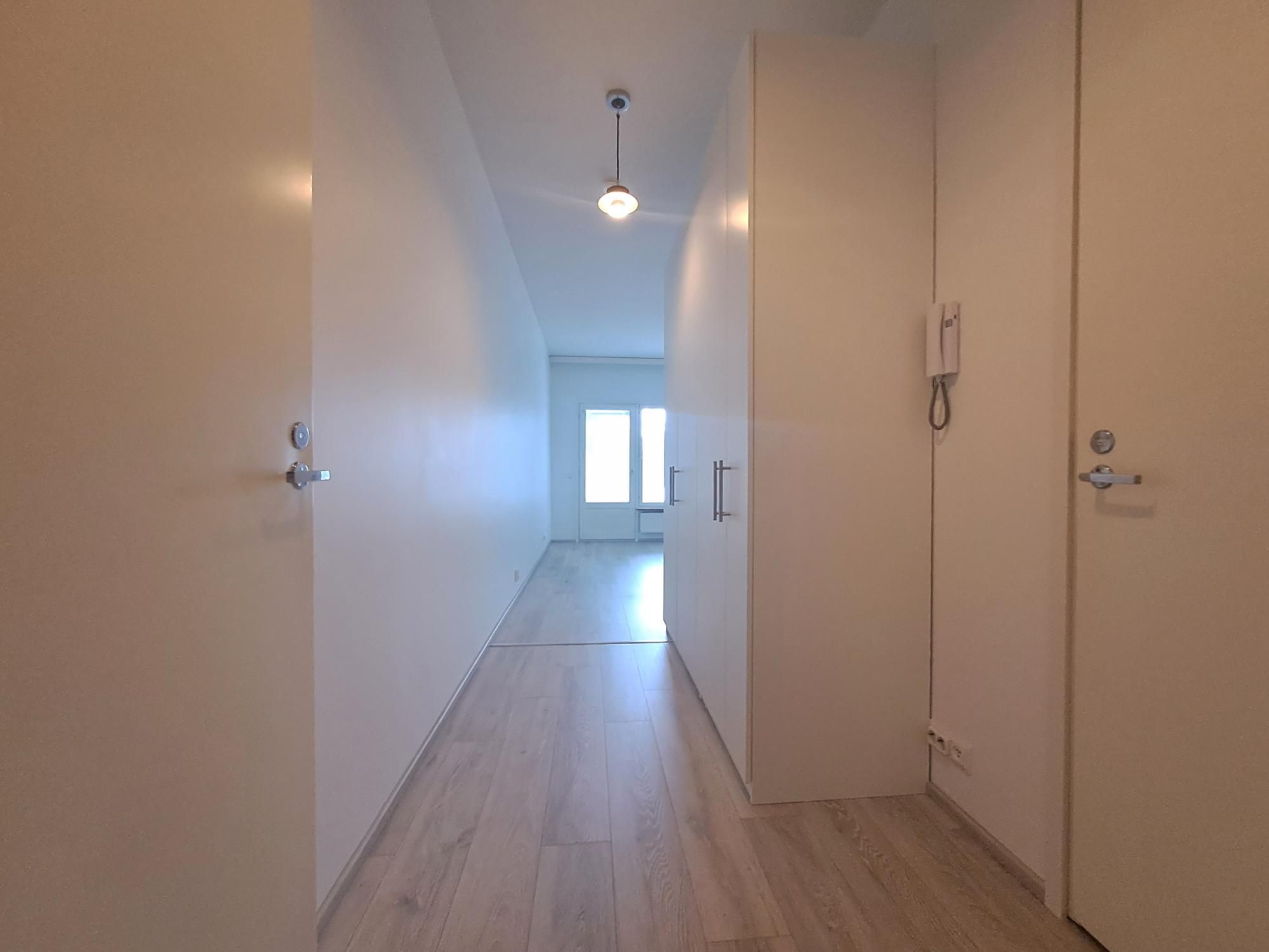 Tämä saunalla ja erittäin tilavalla, lasitetulla parvekkeella varustettu koti on juuri pintaremontoitu. Remontin yhteydessä seinät on maalattu ja lattia on vaihdettu kauniiseen laminaattiin. Asunnon moderniin varustelutasoon kuuluu myös astianpesukone ja viilennyslämpöpumppu. Kylpyhuone on kauttaaltaan kaakeloitu, ja siellä on liitännät sekä tila pyykinpesukoneelle ja kuivausrummulle.