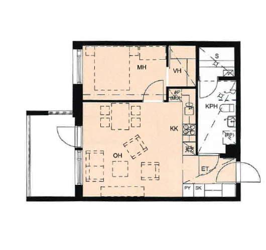 Kerrostalo, 48,5 m², 2h + k + vh + s + lasitettu parveke