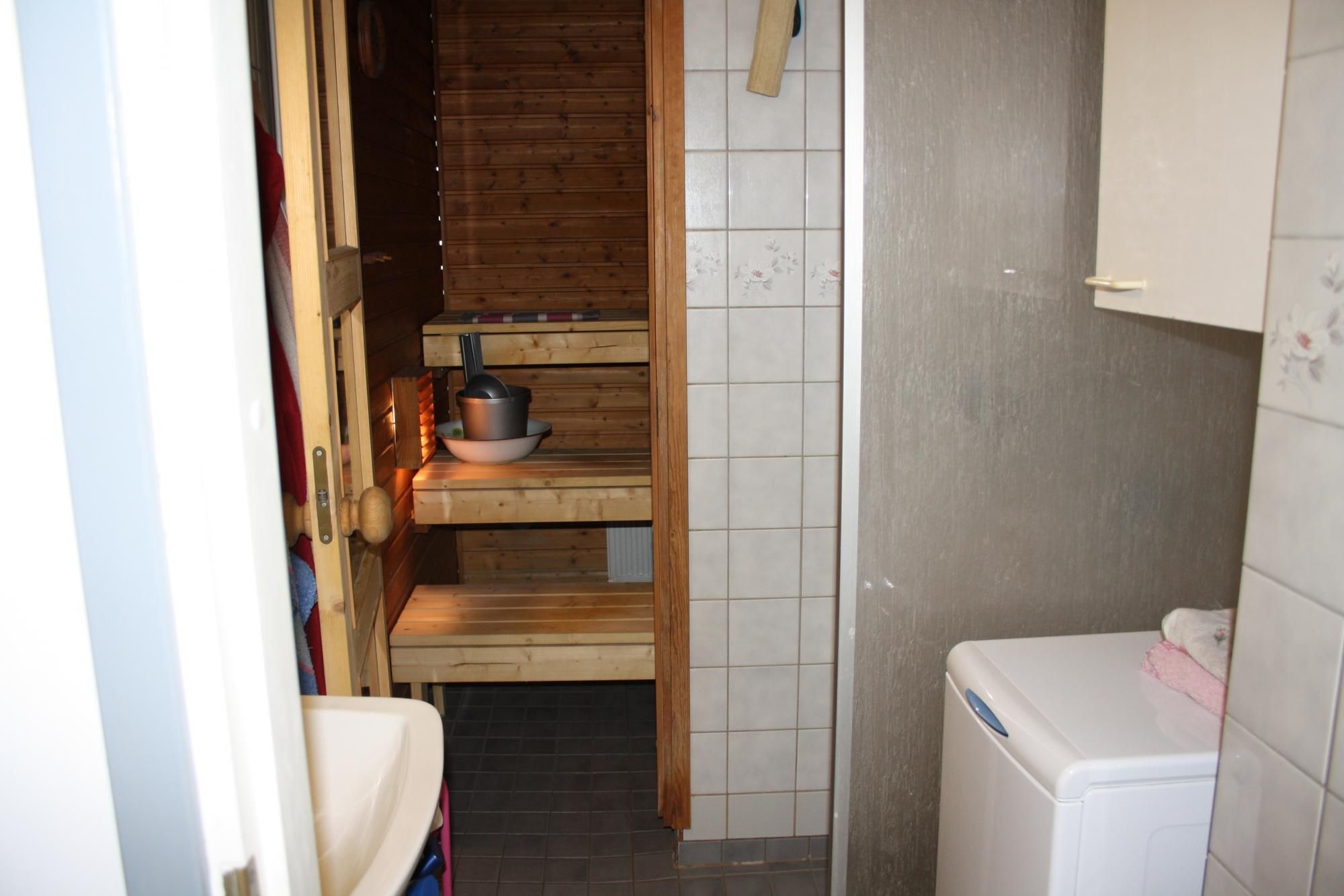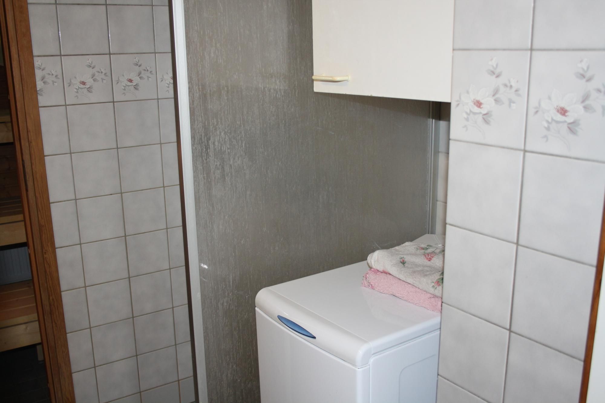 Erillinen wc, kylpyhuoneessa tila kapealle pyykinpesukoneelle. Asunnolla oleva pyykinpesukone jää vuokralaisen käyttöön, jos niin halutaan. Vuokranantaja ei kuitenkaan huolla tai hanki uutta jos pyykinpesukone menee rikki.
