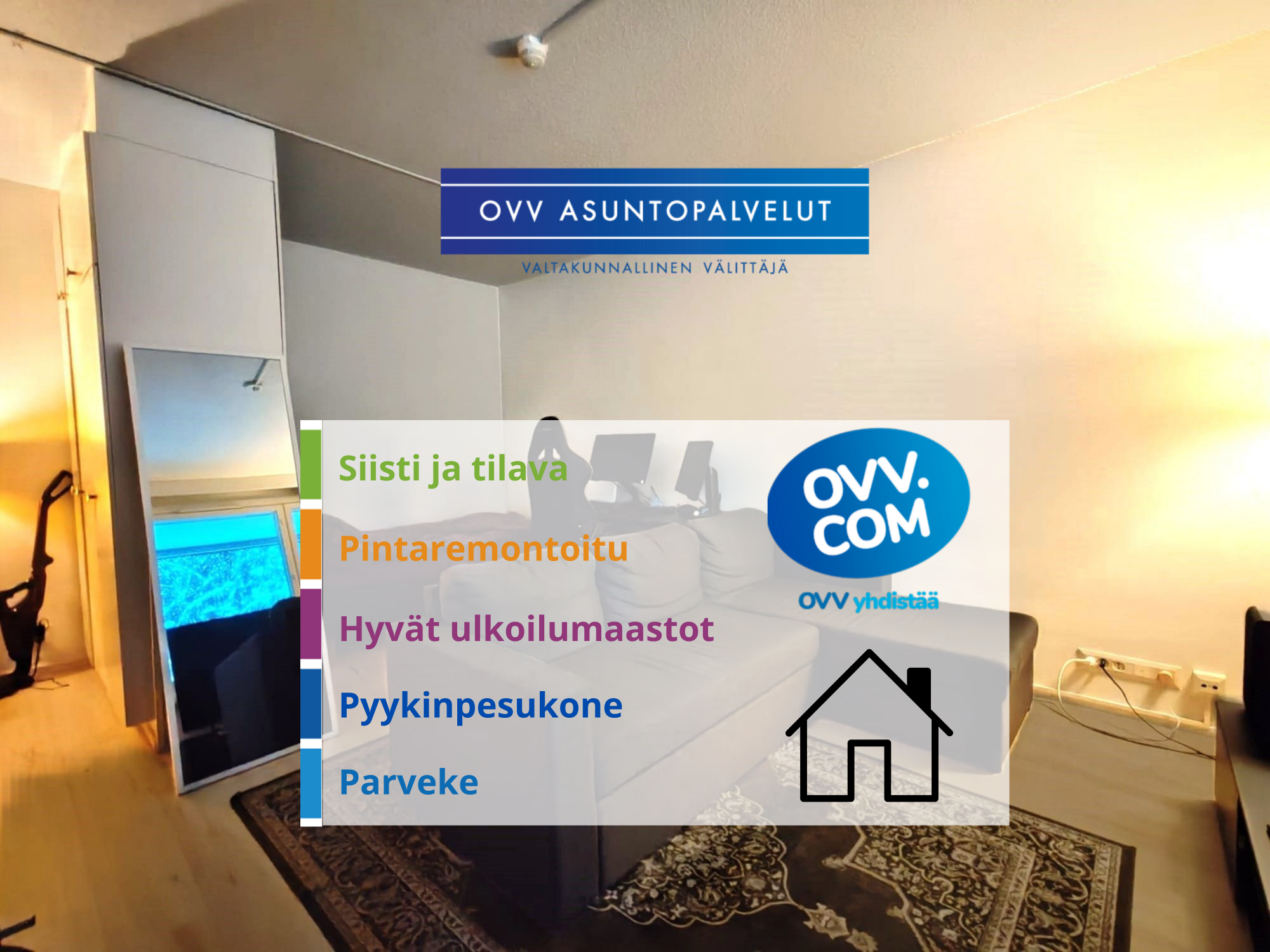 Huoneisto vuokrataan mielellään pidemmäksi aikaa kuitenkin vähintään vuodeksi.