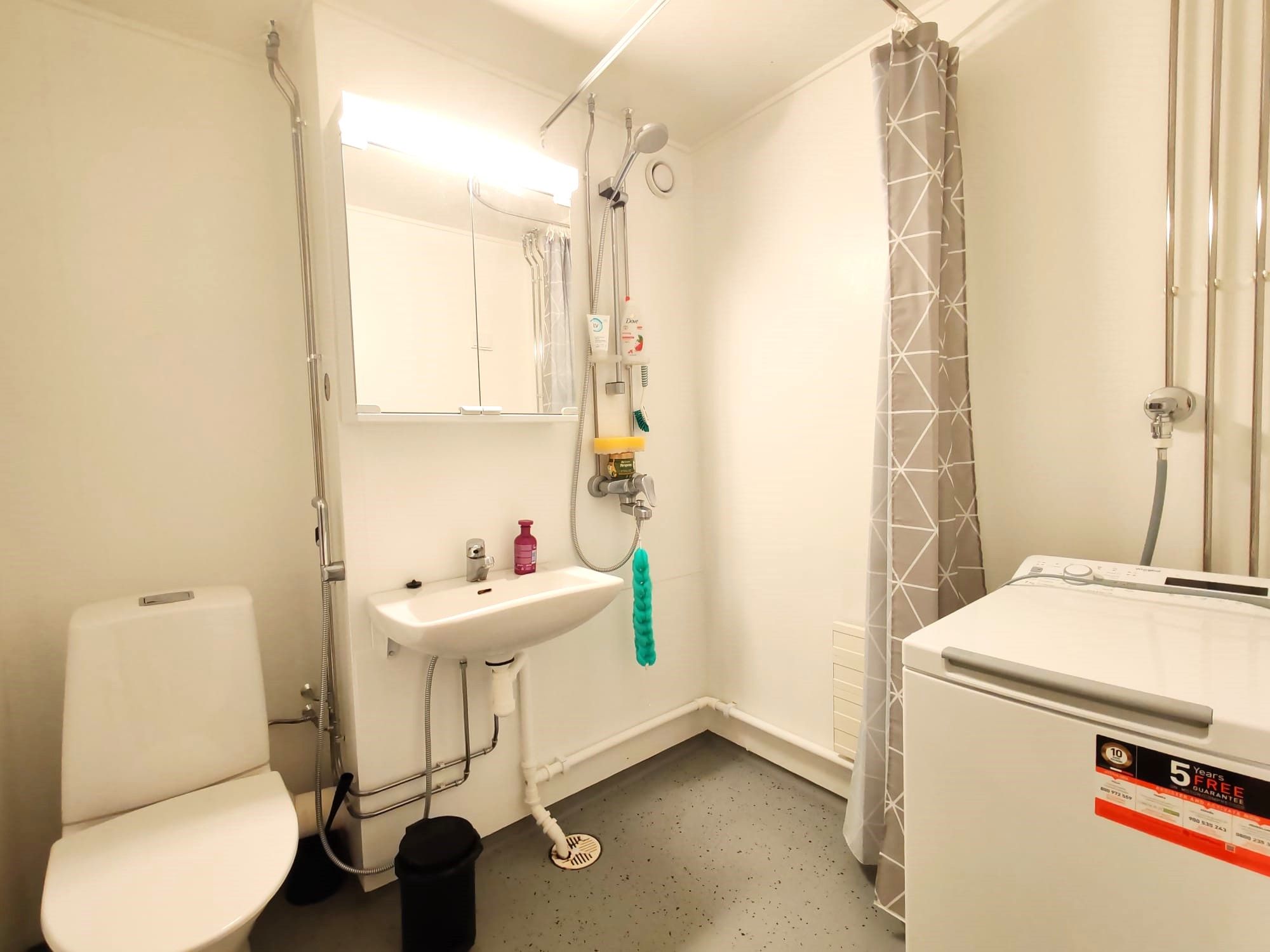 Asunnon pintoja on remontoitu muutama vuosi sitten. Kylpyhuoneessa on liitäntä pyykinpesukoneelle.