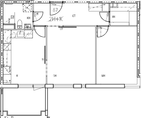 Kerrostalo, 59,5 m², 2h + k + kph + vh + lasitettu parveke
