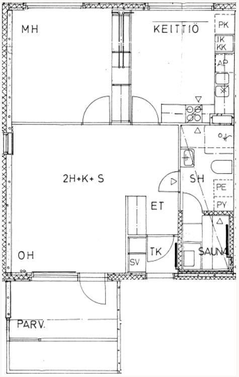 Keittiön varusteluun kuuluu runsaasti kaappitilaa, uuni, liesi, liesituuletin sekä jääkaappipakastin. Olohuoneesta on käynti omalle parvekkeelle. Makuuhuoneista löytyy kaappitilaa ja asunnossa myös vaatehuone. WC:ssä liitäntä pyykinpesukoneelle. Lisämukavuutena oma sauna!