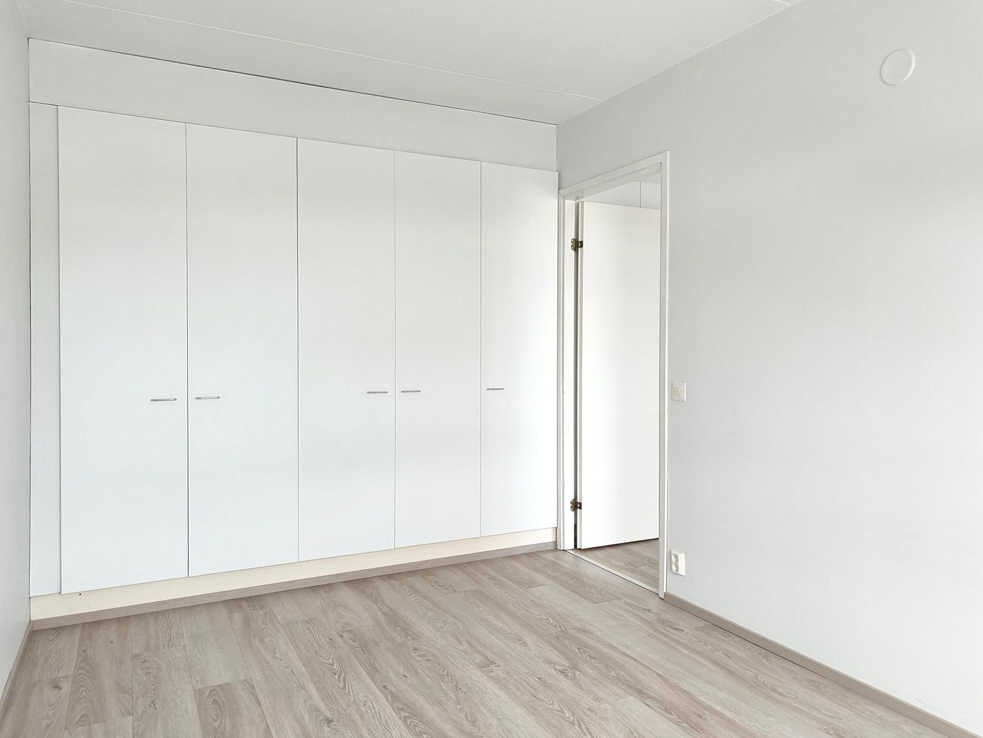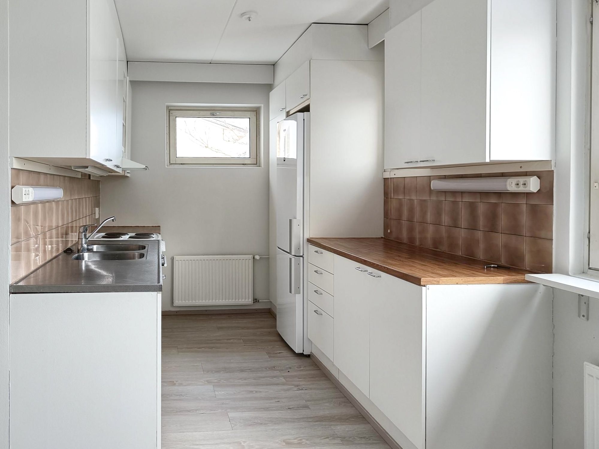 Keittiön varusteluun kuuluu reilusti kaappitilaa, uuni, liesi, liesituuletin ja jääkaappipakastin. Makuuhuoneessa myös paljon säilytystilaa. Olohuoneesta on käynti omalle parvekkeelle.