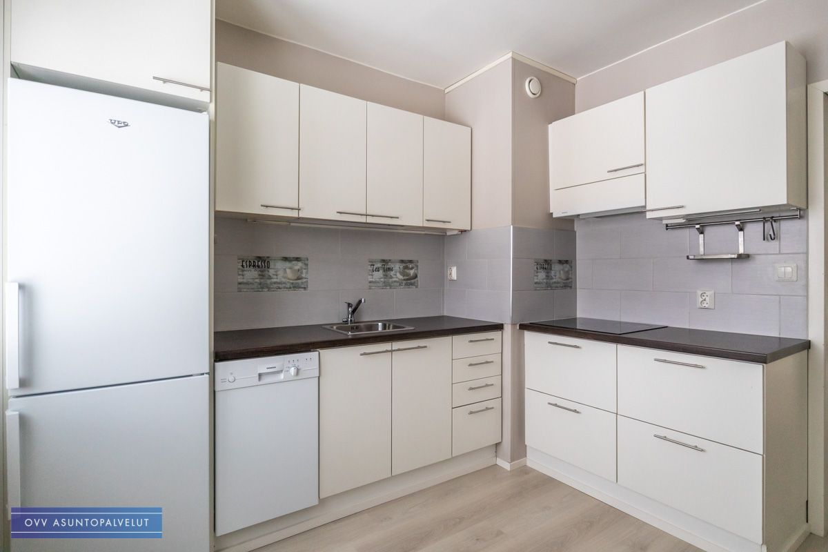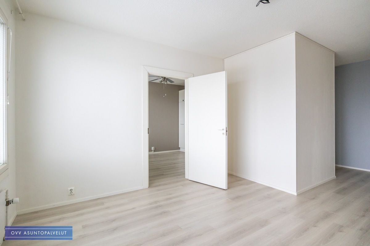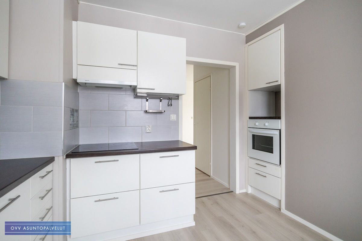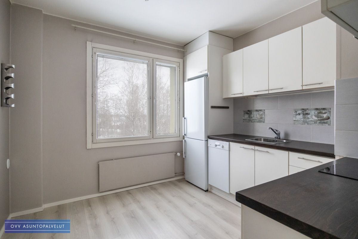 Pinnoiltaan siistikuntoinen asunto. Kuvista poiketen huoneiston lattia on juuri vaihdettu hieman tummempaan sävyyn ja muutoinkin seiniä maalailtu.