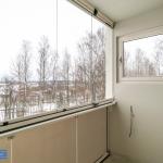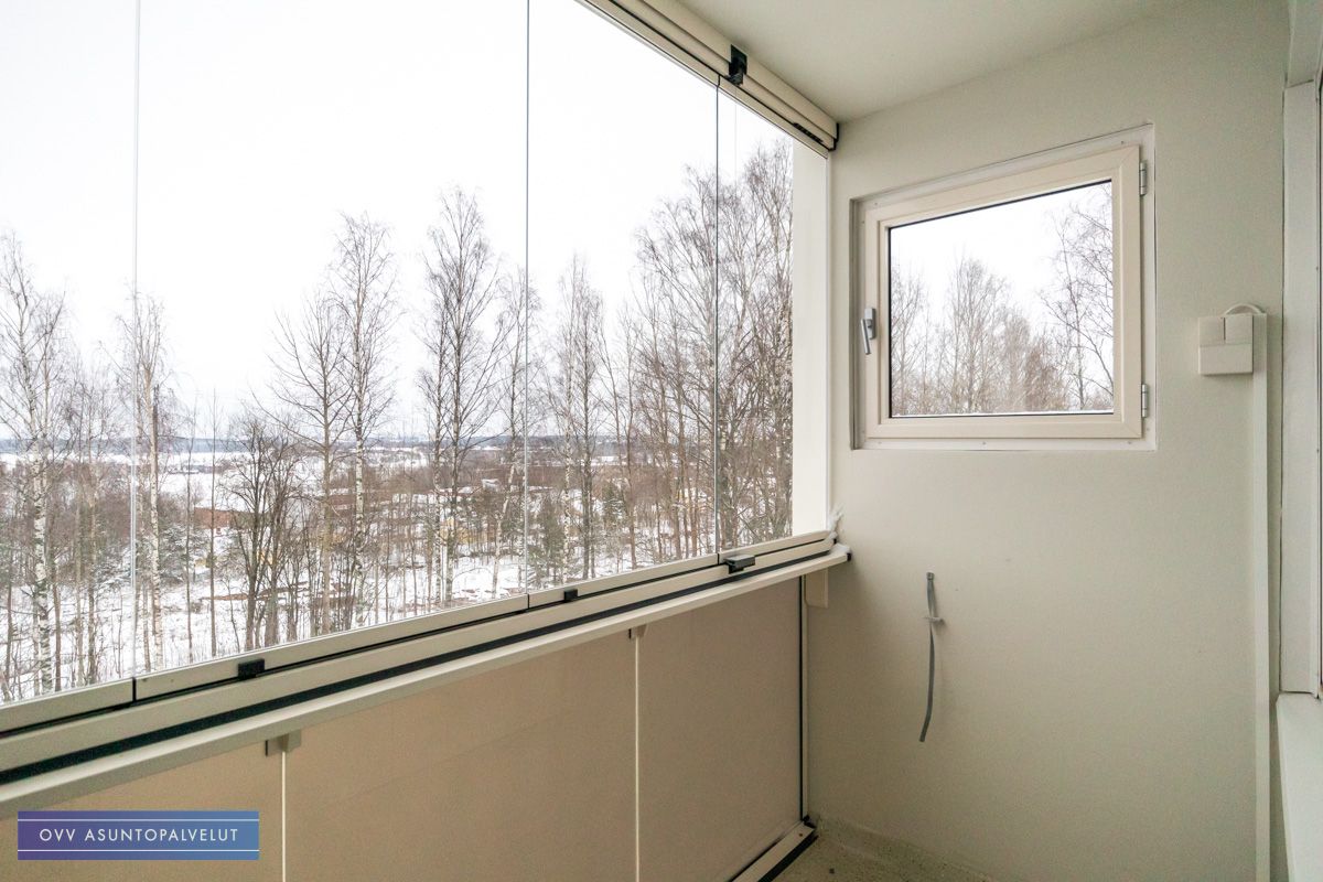 Olohuoneen ja makuuhuoneiden ikkunoista näkymät Pikisaaren suuntaan puiden yli. Keittiön ikkunasta näkymä keskustaan. Asunto talon kulmassa, joten esimerkiksi makuuhuoneella ei lainkaan seinänaapuria.