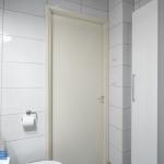 Kylpyhuoneessa liitäntä ja paikka pyykinpesukoneelle.