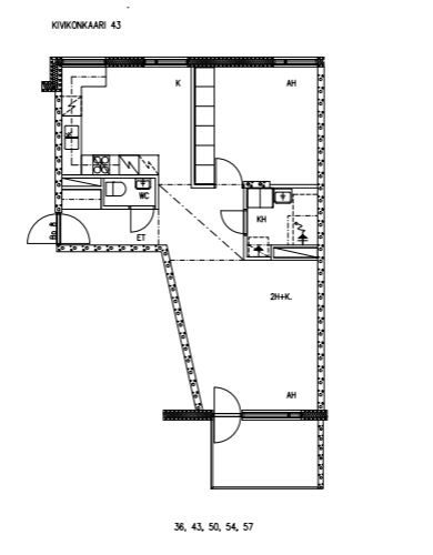 Kerrostalo, 61 m², 2h + k + kph + parveke