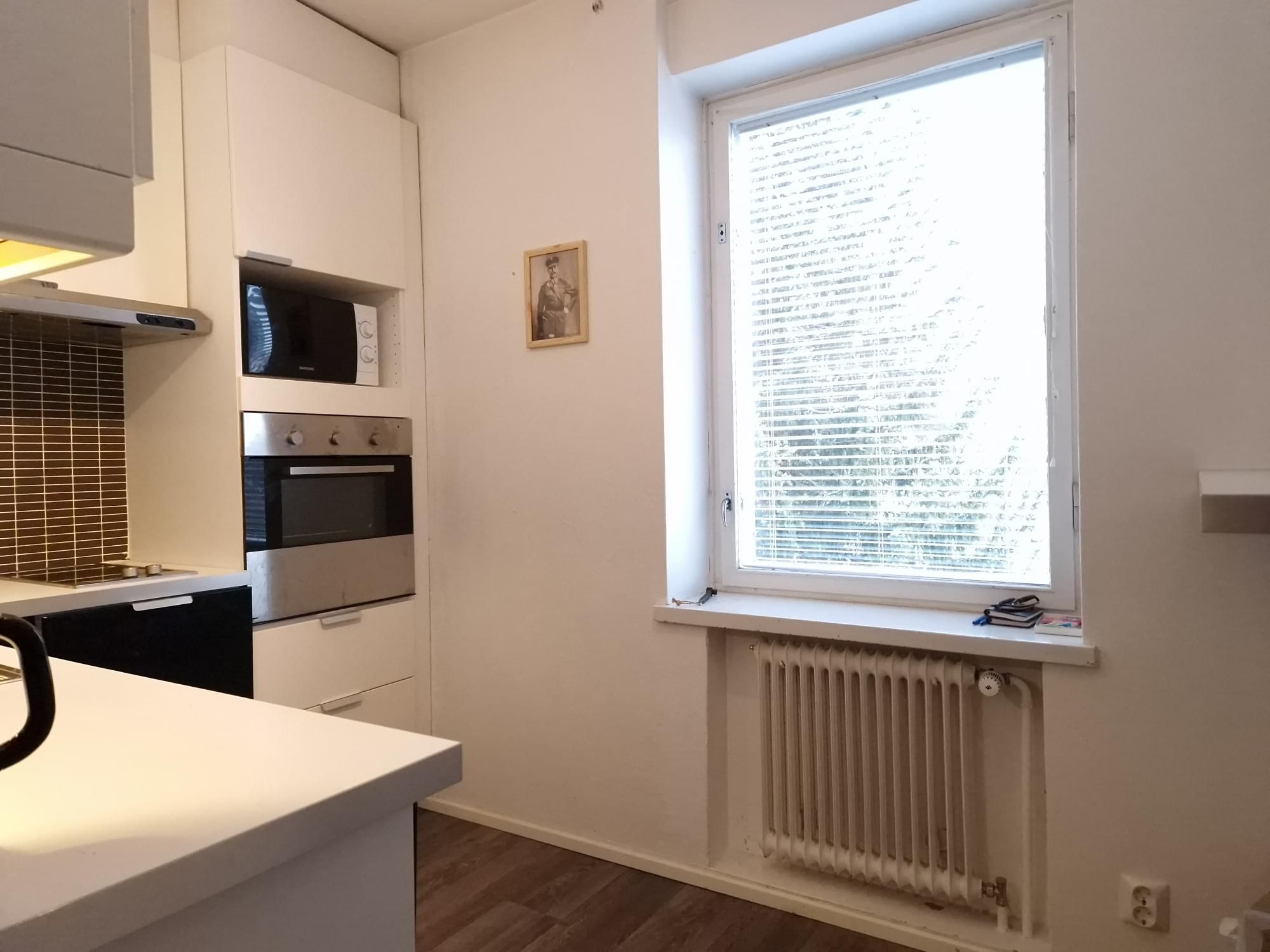 Tämä kaksio toimii niin yksinasuvalle kuin pariskunnalle. Kylpyhuone on eteisen yhteydessä. Pyykinpesukoneelle on tila ja liitäntä. Keittiössä on astianpesukone valmiina sekä runsaasti kaappitilaa. Olohuoneessa on tilaa oleskelulle ja tarvittaessa työpisteelle tai ruokaryhmälle. Makuuhuoneen yhteydessä on isot kiinteät kaapit. Tämä läpitalon asunto tarjoaa pitkäksi aikaa huoletonta ja viihtyisää asumista rauhallisessa taloyhtiössä.
