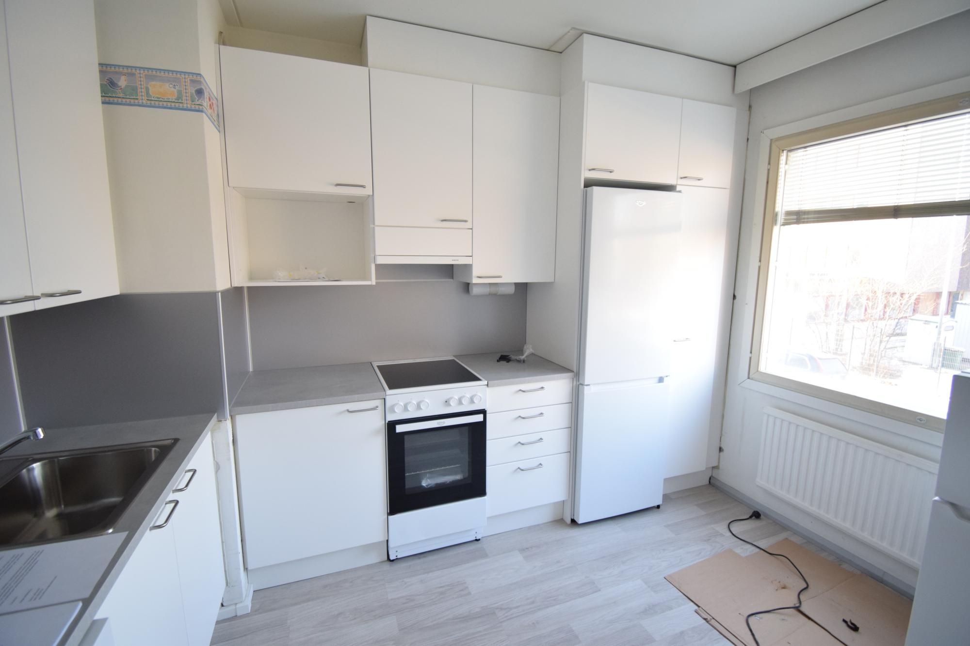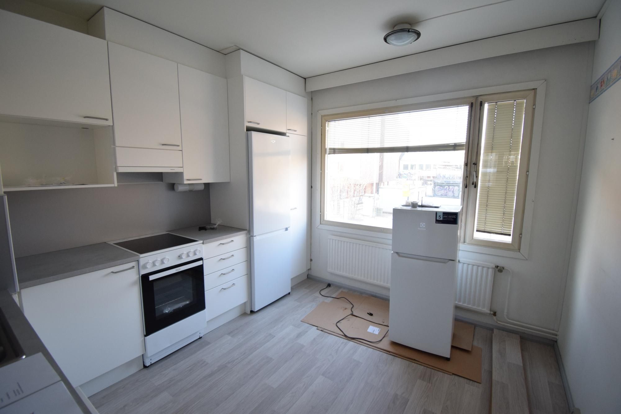 Asunnon muutkin pinnat remontoidaan neuvotellusti (seinät, lattiat, eteisen komerot) 630€/kk vuokrahinnalla. Asunto myös mahdollista vuokrata kuvien mukaisessa kunnossa hintaa 585€/kk