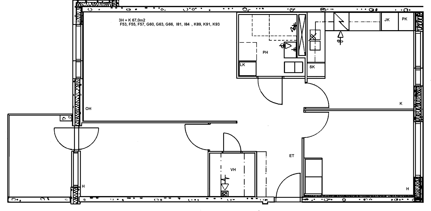 Kerrostalo, 67 m², 3h + k + kph + vh + parveke