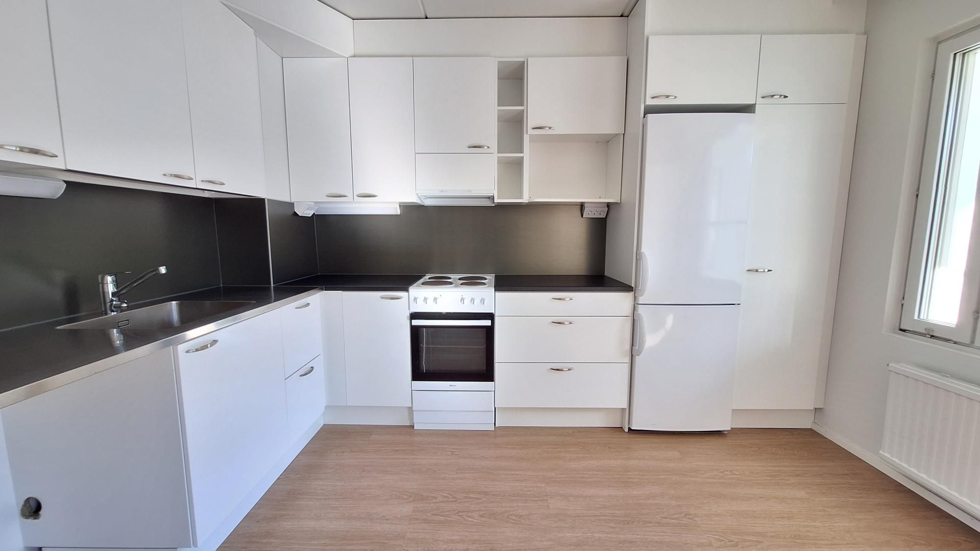 Ylimmän kerroksen siisti kolmio Kaarelassa. DNA 10 M kiinteistölaajakaista sisältyy vuokraan.