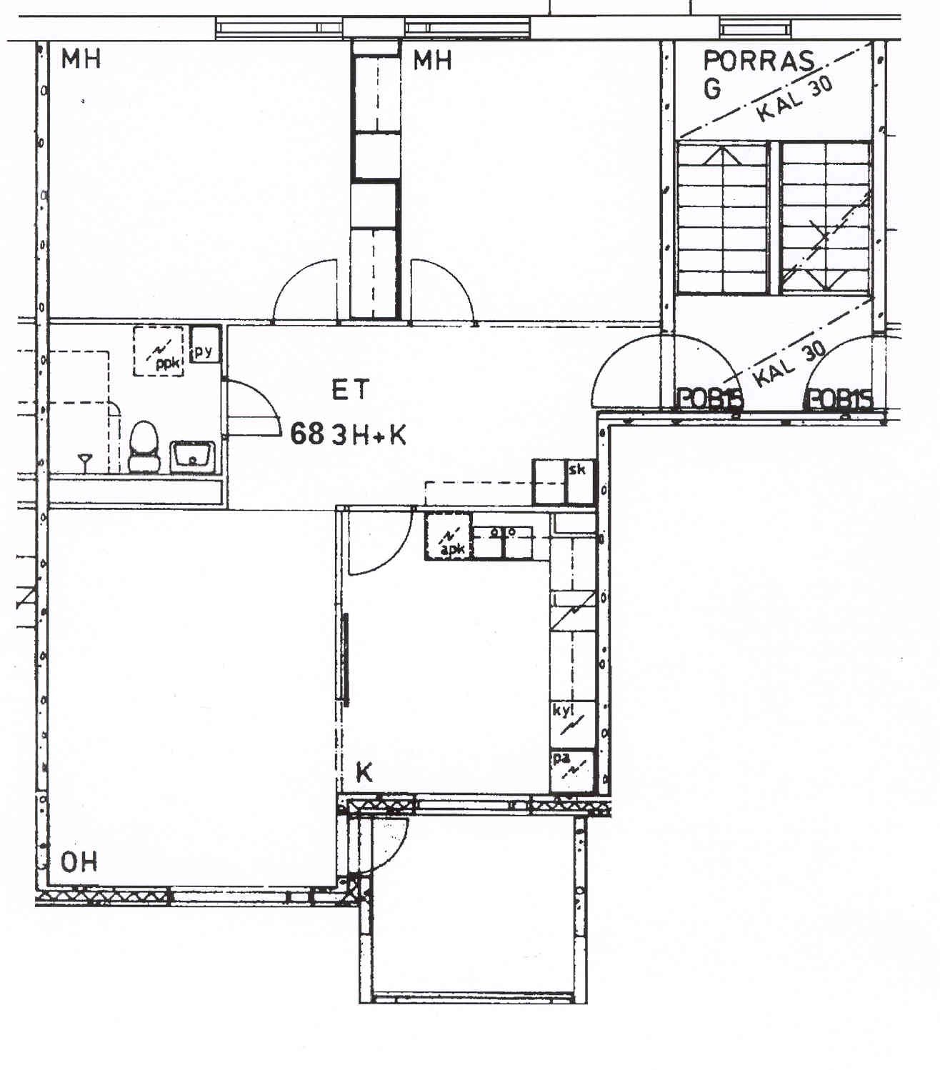 Kerrostalo, 74,5 m², 3h + k + kph + parveke