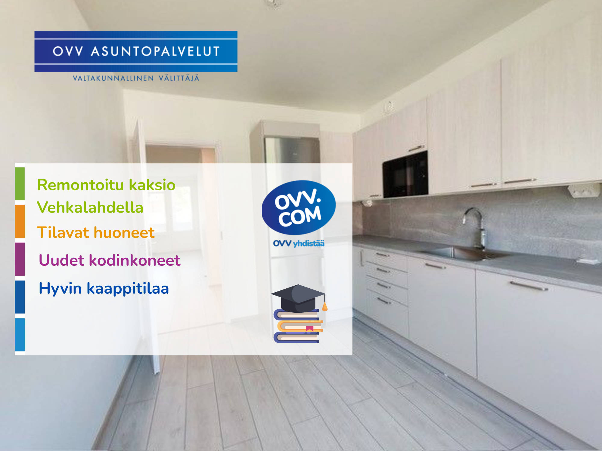 Huoneisto vuokrataan mielellään pidemmäksi aikaa, kuitenkin vähintään vuodeksi. Käy tekemässä hakuvahti sivuillamme (https://www.ovv.com/asunnonhakijalle/hakuvahti/), niin saat heti kaikki vapaat asunnot omaan sähköpostiisi!