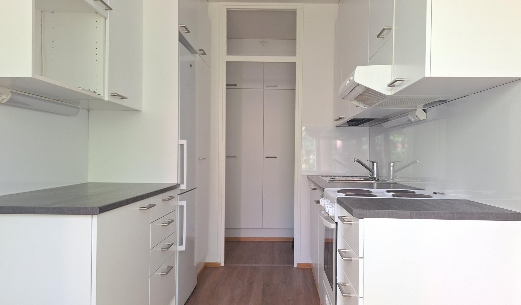 Toimiva pohjainen koti vanhassa Vuosaaressa. Keittiöön mahtuu hyvin ruokapöytä, varaus myös astianpesukoneelle. Makuuhuoneen yhteydessä on tilava vaatehuone. Kylpyhuoneessa pk-liitäntä.