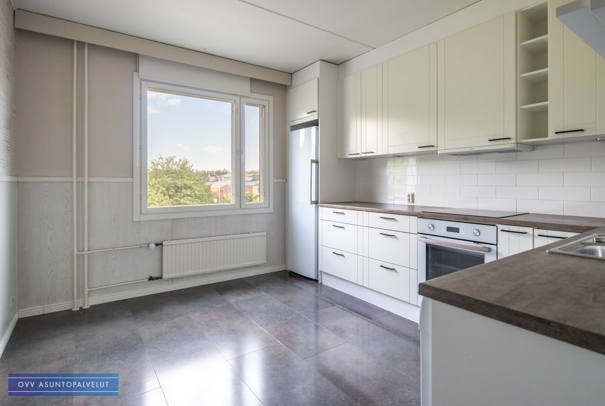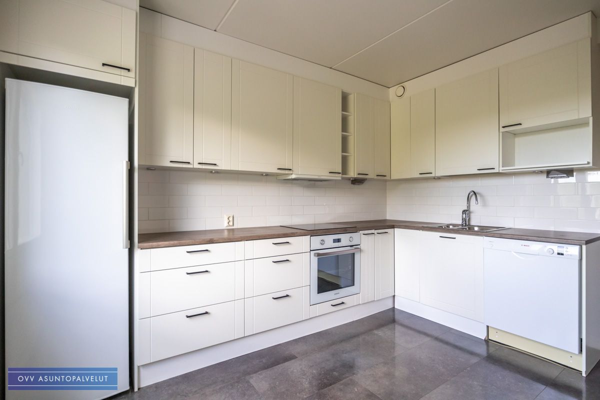 Tilava keittiö remontoitu nykyaikaiseksi ja sieltä löytyy luonnollisesti kaikki tarpeellinen aina astianpesukoneesta ja induktioliedestä lähtien. Keittiössä myös täysikokoinen jääkaappi.