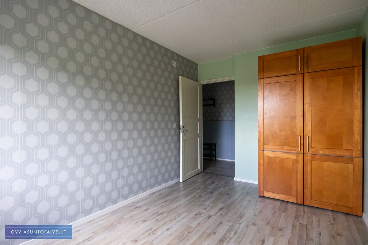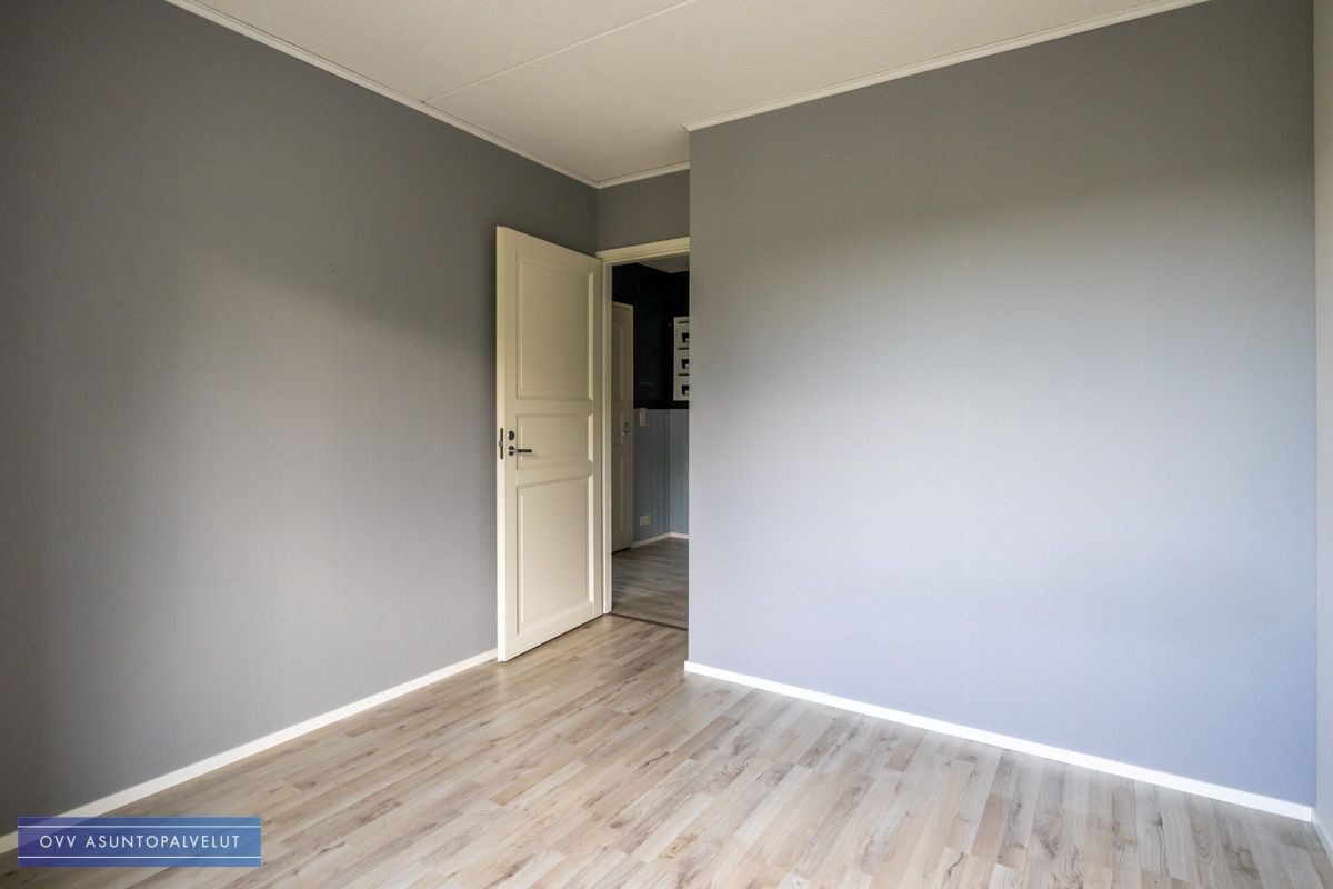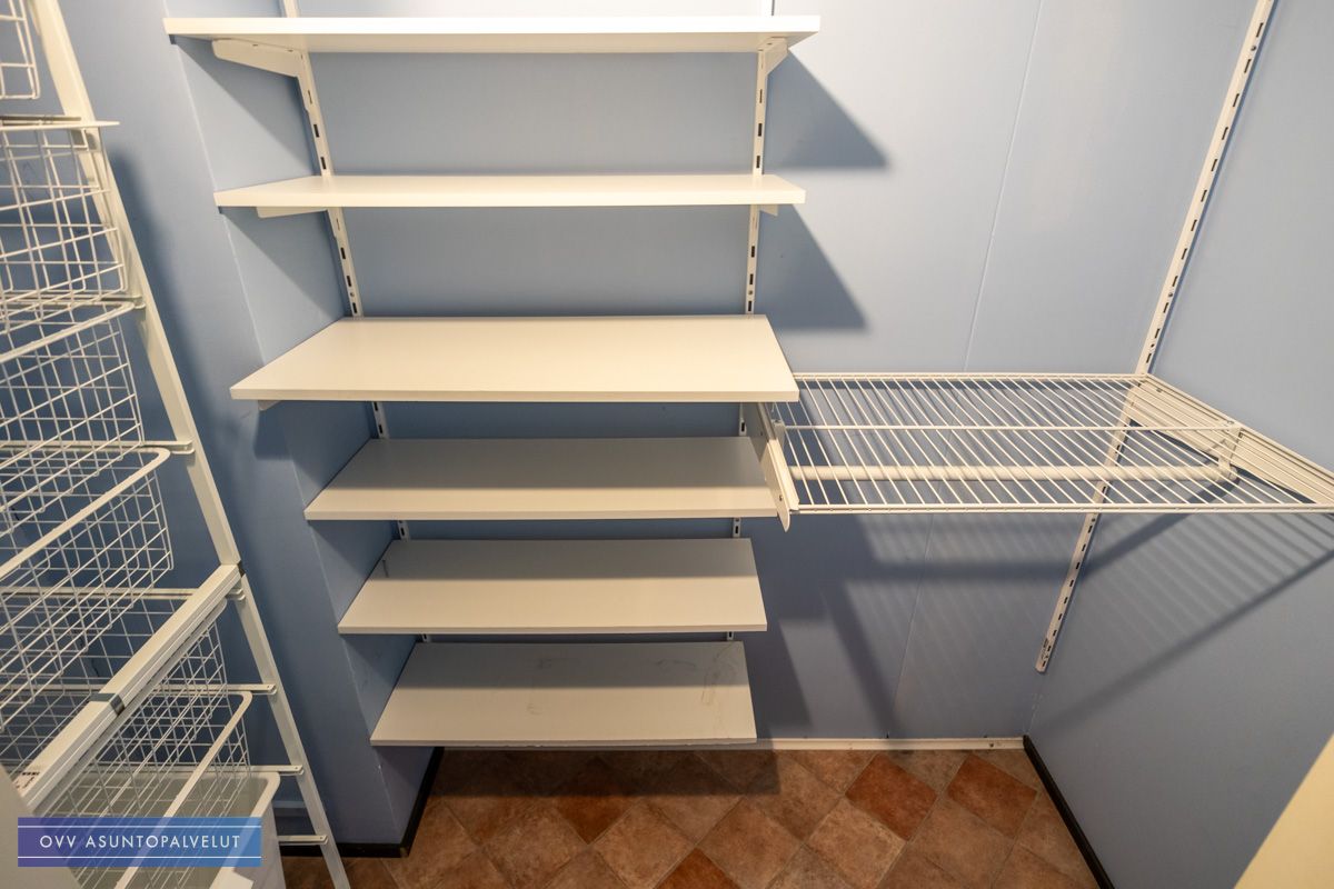 Makuuhuoneissa säilytystilaa kiinteissä kaapistoissa ja lisäksi makuhuoneiden välistä löytyy tilava vaatehuone, jonne käynti eteisestä.
