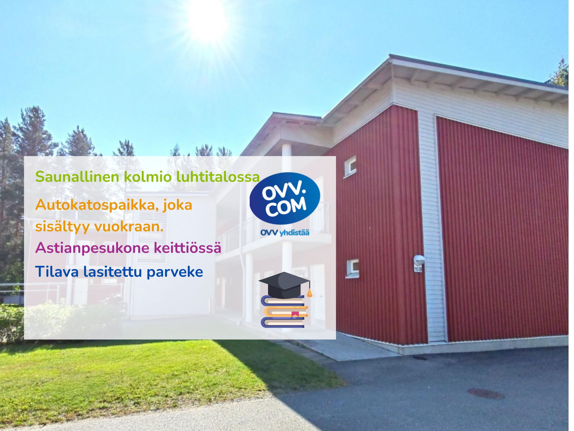 Autopaikka:Autokatos. AK 2. sisältyy vuokraan.