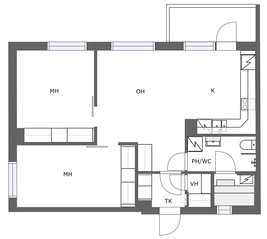 Luhtitalo, 65,5 m², 3h + tupakeittiö + s + lasitettu parveke